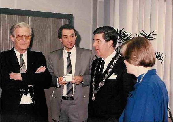 Don Burgers, Paul Quekel en Ruud Lubbers toasten op de verkiezingen van 1986