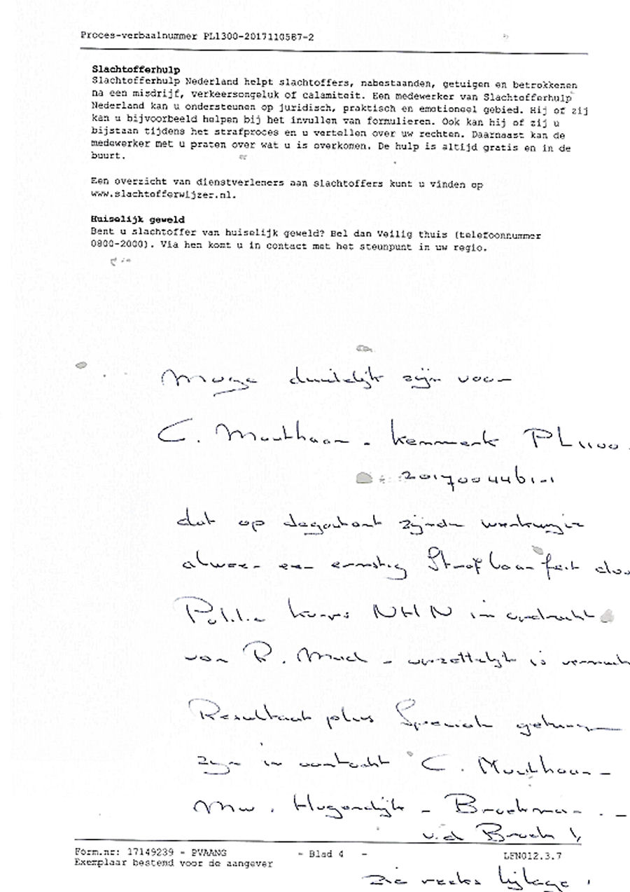 Enige tijd geleden heb ik u een aangetekende brief gestuurd m.b.t. de wettelijke verplichting als kennisdrager (met name beëdigde functionarissen), om vanwege art. 160 Sv en 162 Sv van het wetboek van strafvordering aangifte te doen van strafbare feiten, waarvan u als kennisdrager wetenschap hebt. Tot nu toe heb ik van u geen inhoudelijke reactie hierover mogen ontvangen. Zoals ik u heb laten weten hebt u uw kortgedingrechter mr. W.J.J. Beurskens uit de wind proberen te houden door zijn bewust dwalende vonnis inzake de frauduleuze activiteiten van de ronduit criminele advocaten af te dekken. Voor het overige blijven van kracht de al eerder opgestelde processen-verbaal door Buitengewoon Opsporingambtenaar mevr. D. Nes en collega.