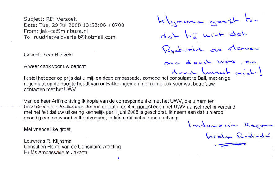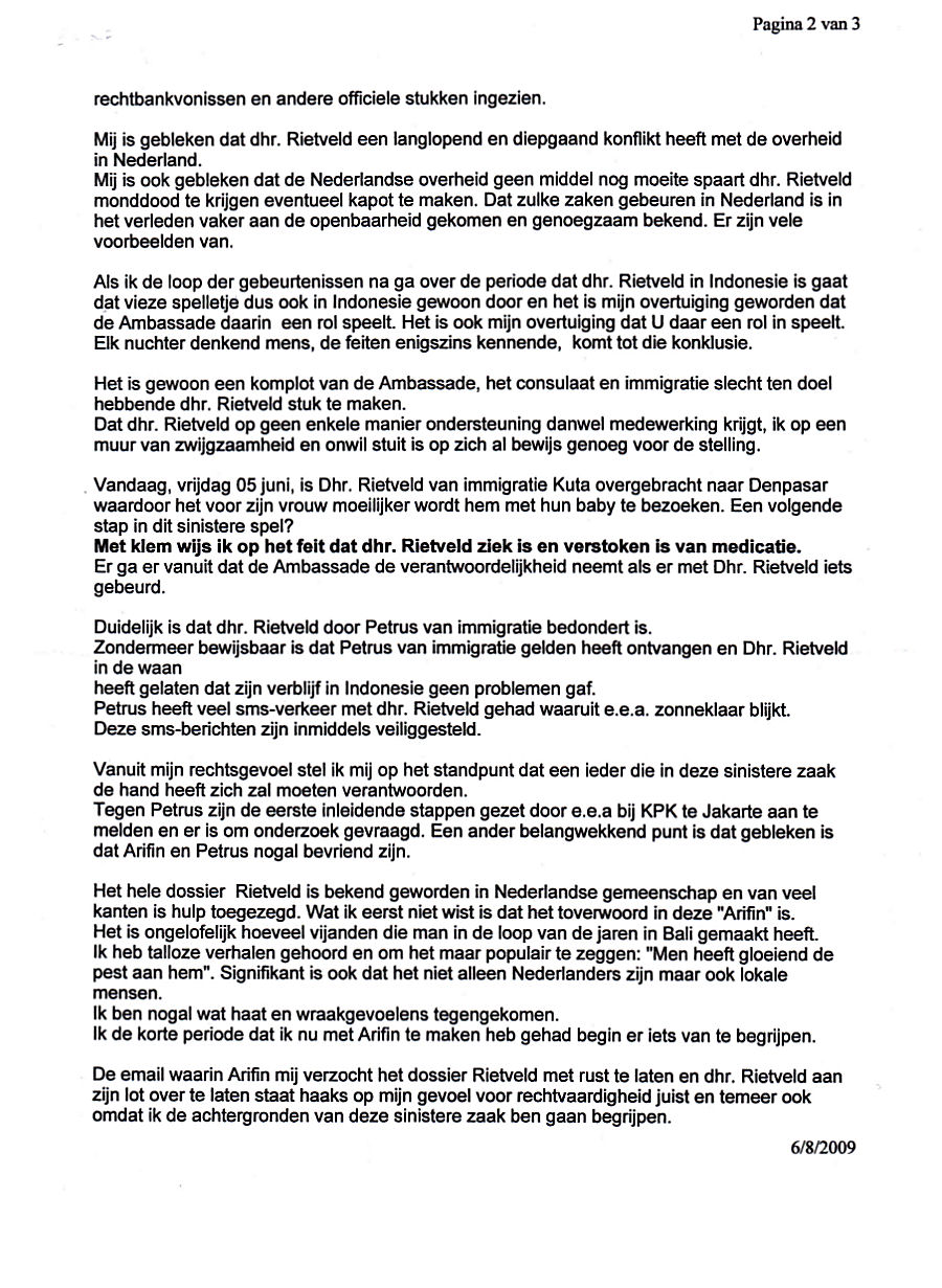 daaraan verbonden is en gepleegd, danwel door A.P. Maes en G.R.M. v.d. Assum. Men wist dat Rietveld op Bali woonachtig was in 2008, lees daarom nauwkeurig zijn vals opgemaakte aangifte nr. 2 zowel
