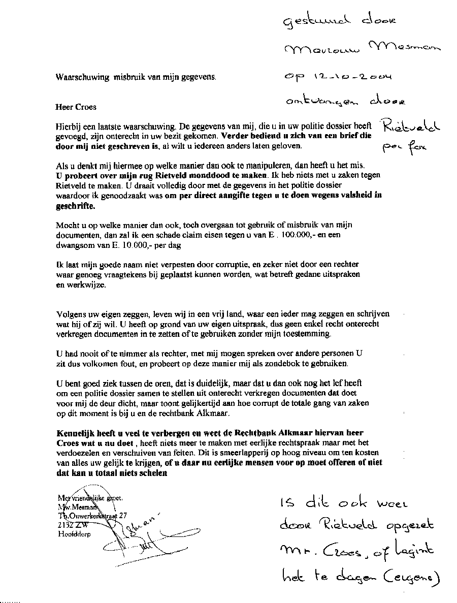 Open brief aan rechter Croes met felle kritiek op zijn rechtspraak