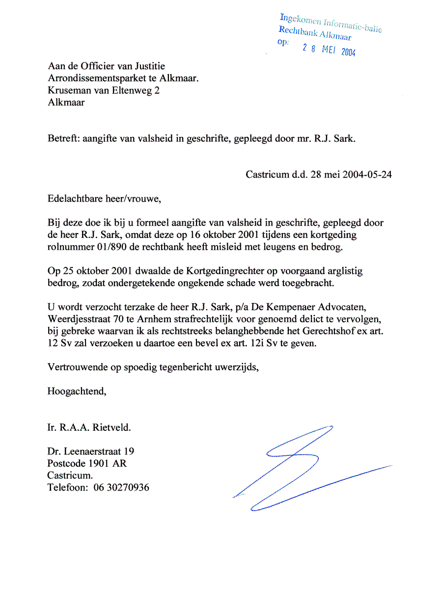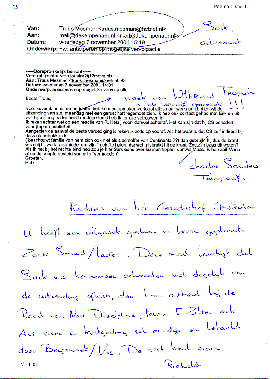 Volgens u en de overige raadsleden was oplichter Mr. Rutger Sark van de Kempenaer Advocaten een advocaat die geen berisping nodig had, en mij niet schadeloos hoefde te stellen. Bedenk met dit zeer beperkte aantal bewijzen dat het anders is, want ik kom met Sark wederom naar de Raad van Discipline te Arnhem.