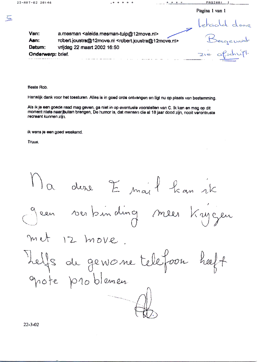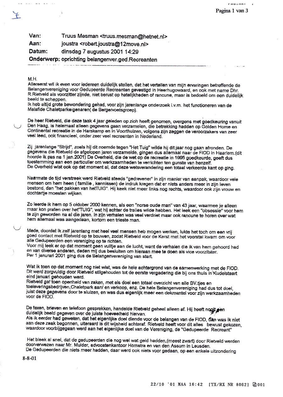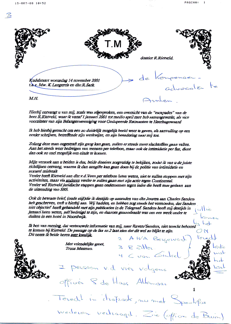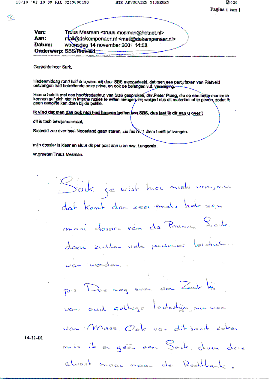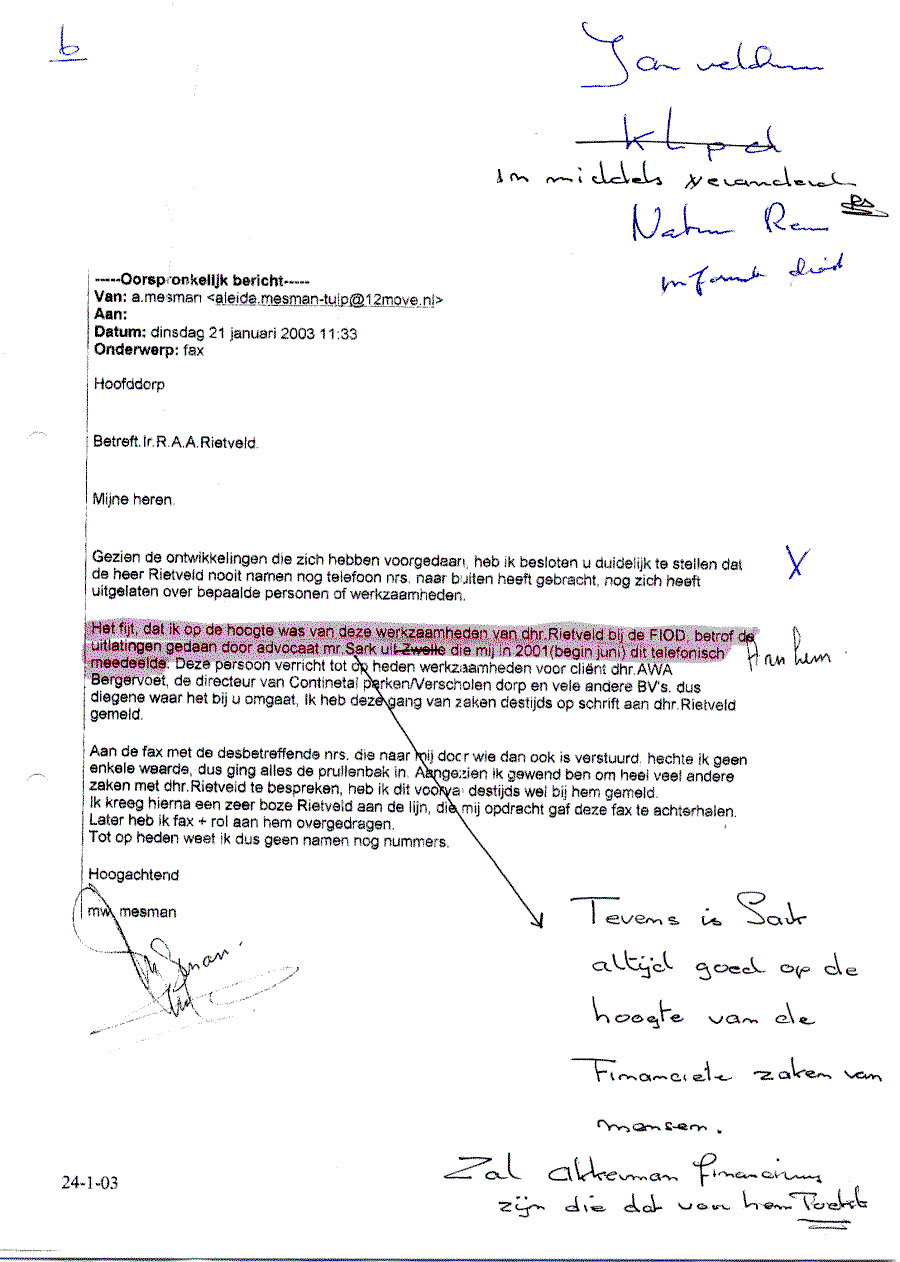 Faxbericht aan mr. Maes van Kees Griesdoorn over schijneisers