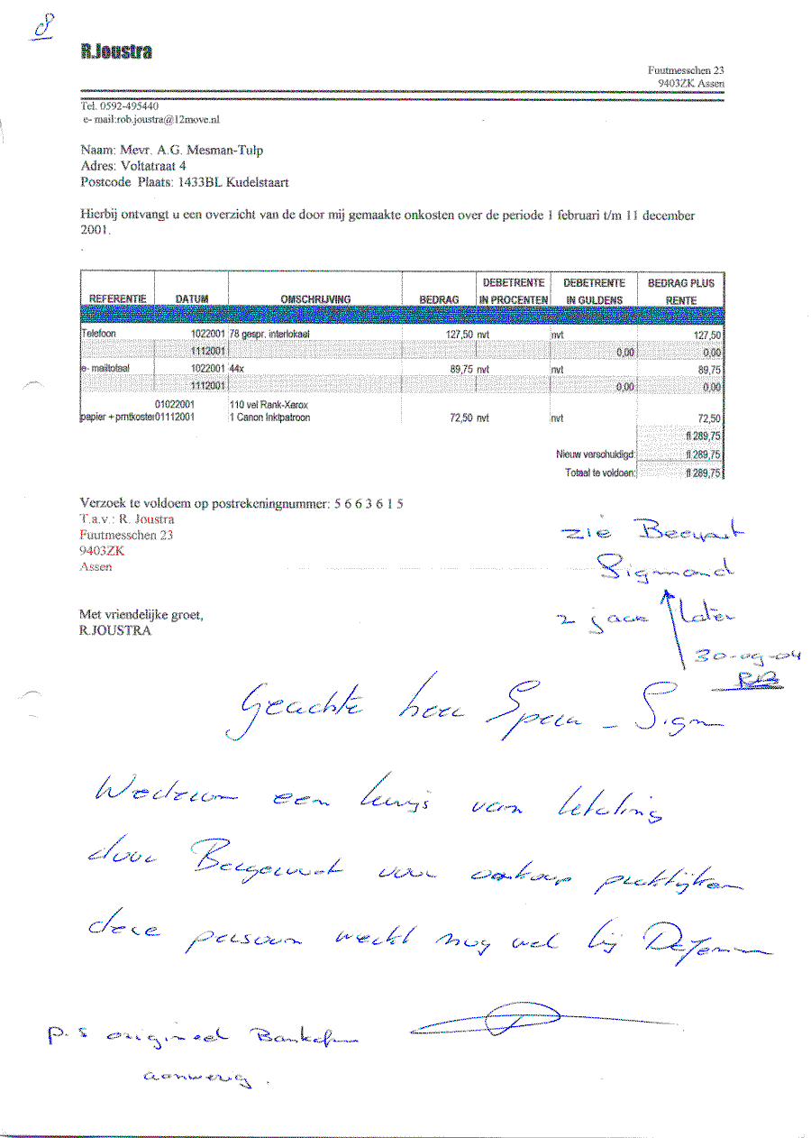 Verwijt aan mr. Sigmond over z'n inactiviteit. Wel betalen, maar niet kunnen halen!