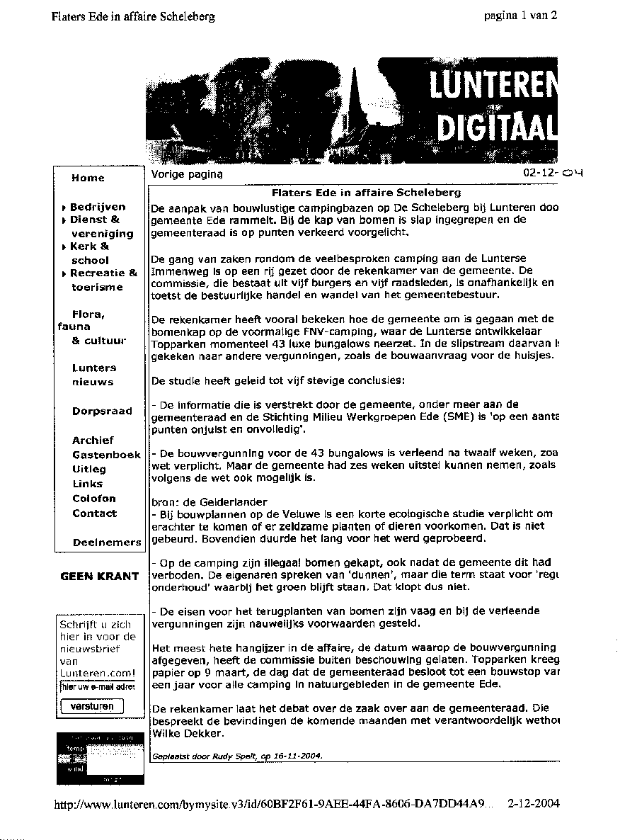 Open brief aan de gemeente Elburg en de pers over Bospark Dennenrhode