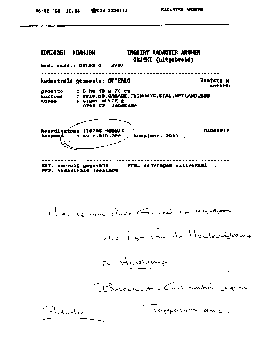 Kadastergegevens Kamer van Koophandel van conglomeraat van parken van Bergervoet sr.