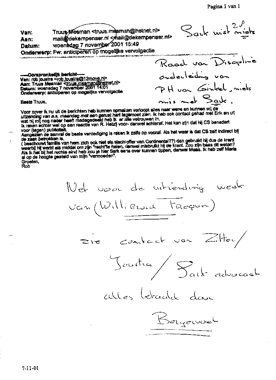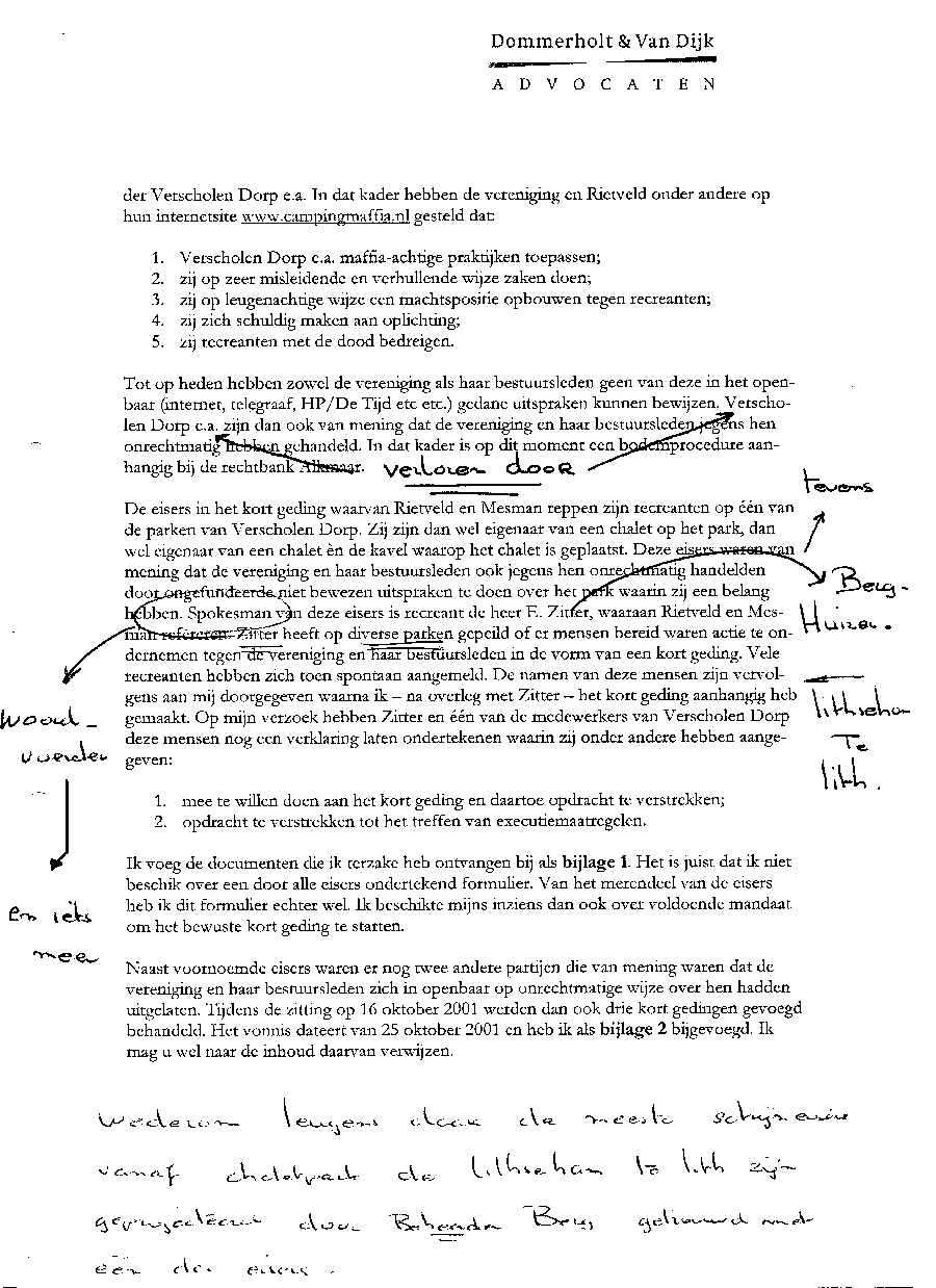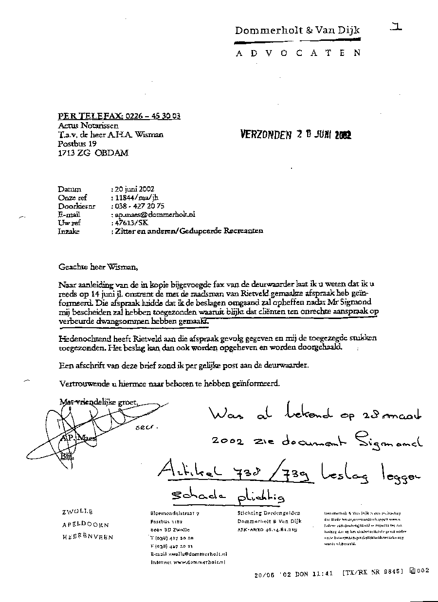 Document met procedure tegen mr. Maes van Dommerholt & van Dijk in Zwolle