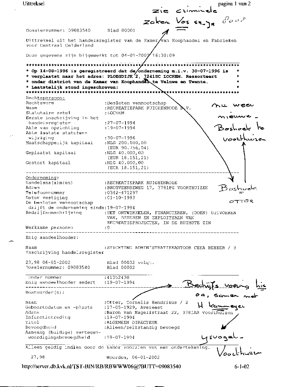 Kadastergegevens Kamer van Koophandel van conglomeraat van parken van Bergervoet sr.