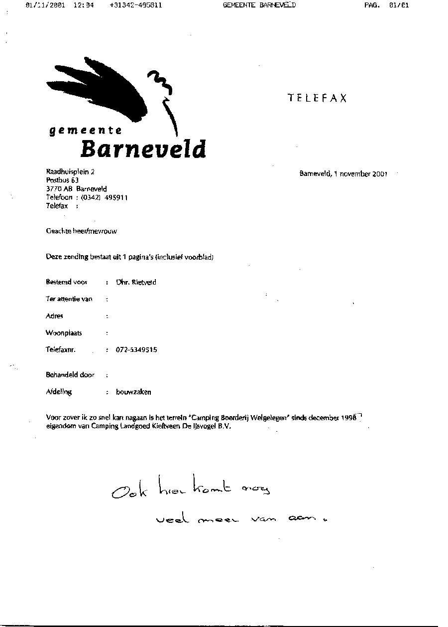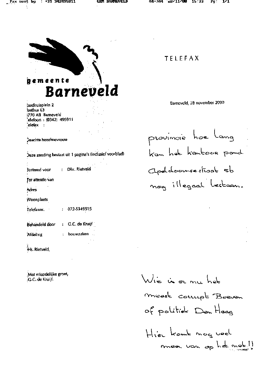Faxbericht aan mr. Maes van Kees Griesdoorn over schijneisers