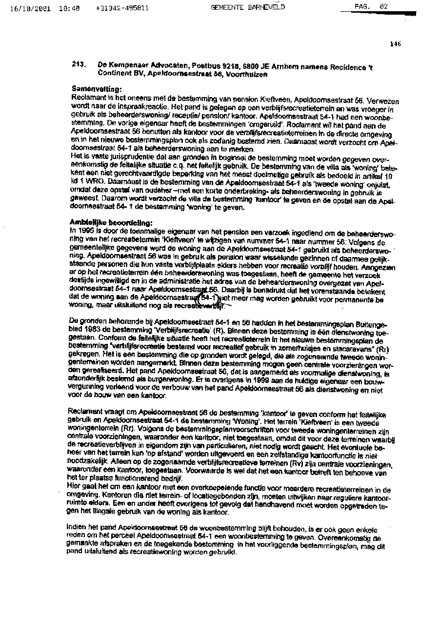 Voorlopige conclusie van Rietveld aan de recreanten en semi-permanente bewoners
