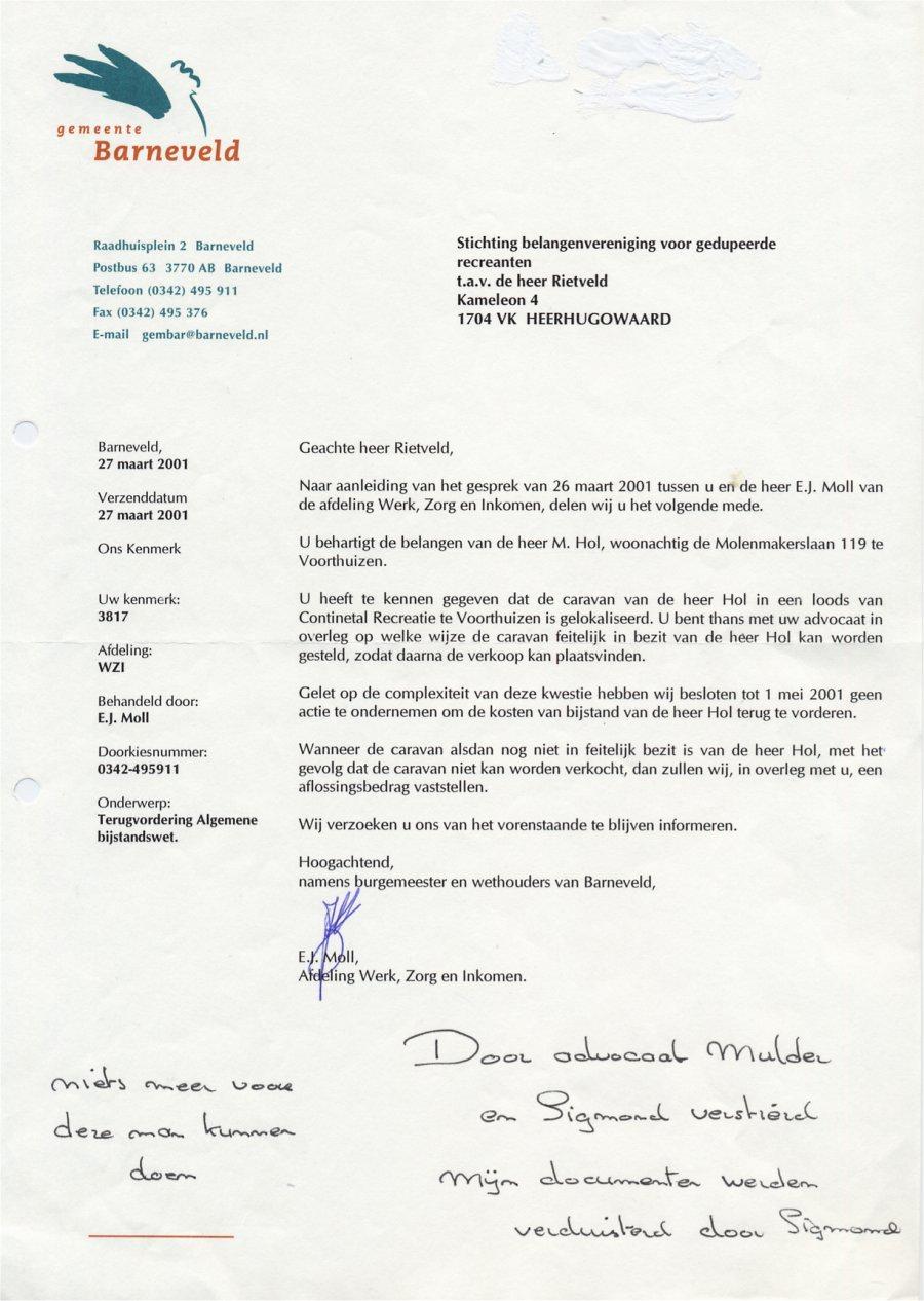 Brief aan SDN met de sommatie om de website van Rietveld te verwijderen