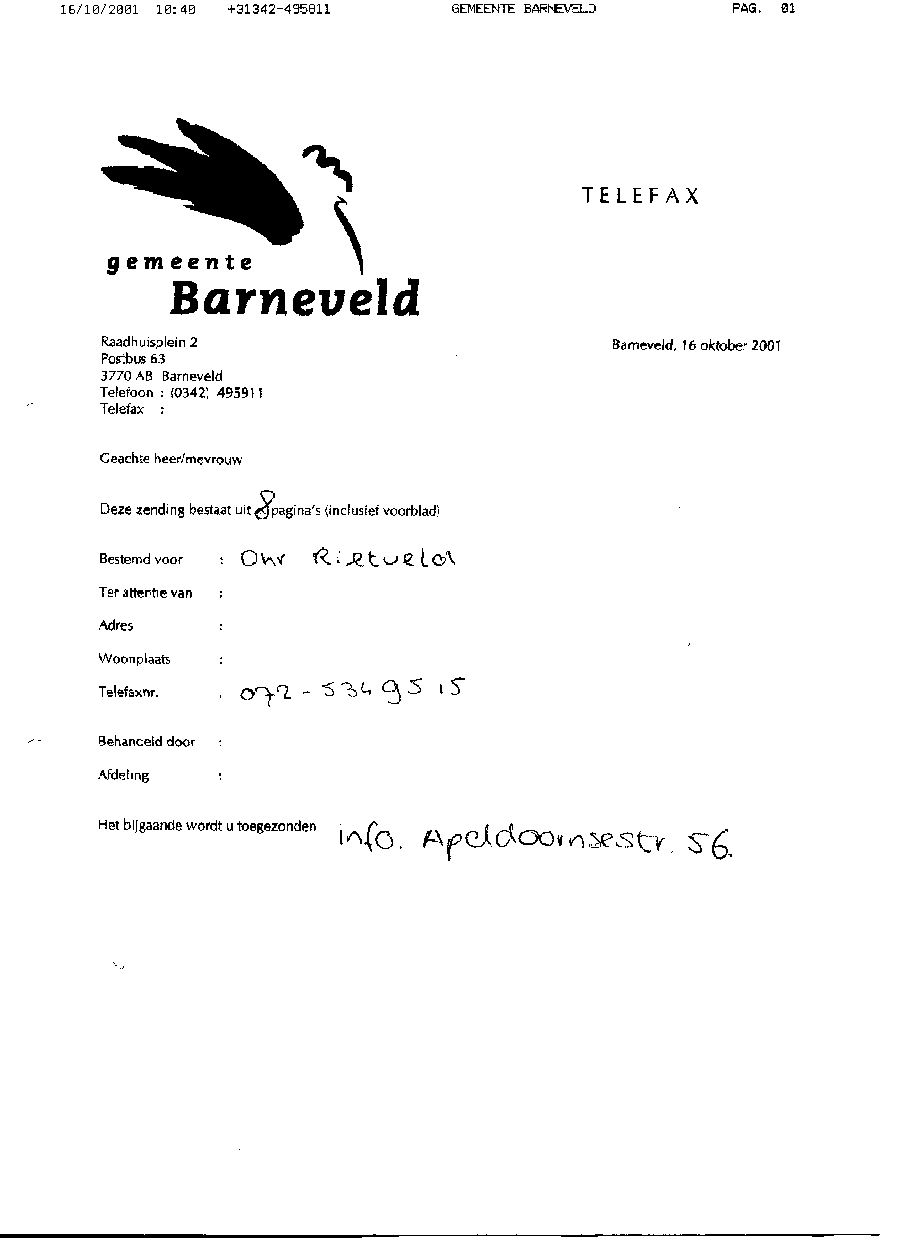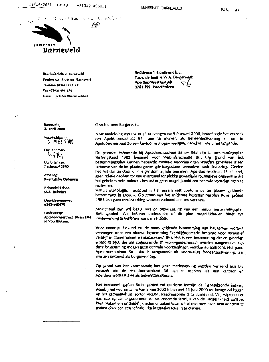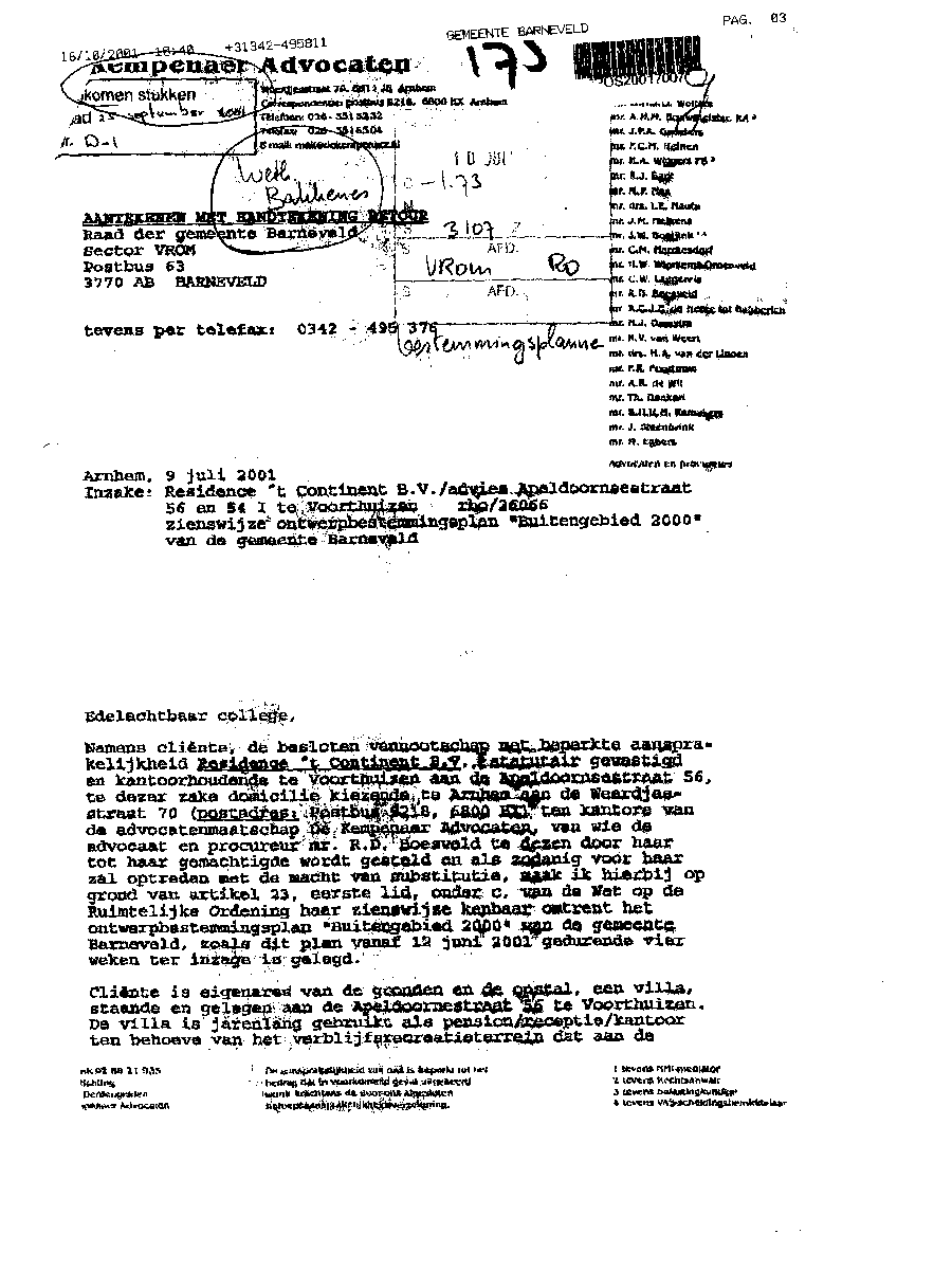 Faxbericht aan mr. Maes van Kees Griesdoorn over schijneisers