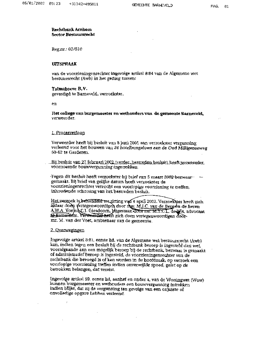 Document met procedure tegen mr. Maes van Dommerholt & van Dijk in Zwolle