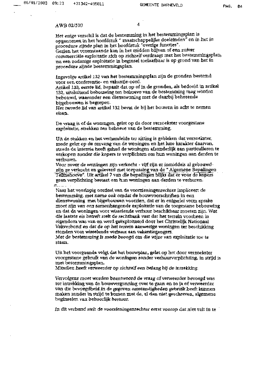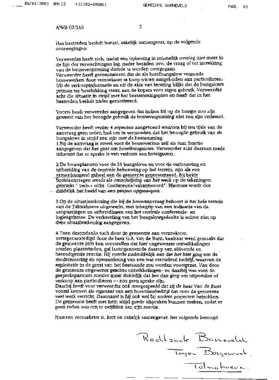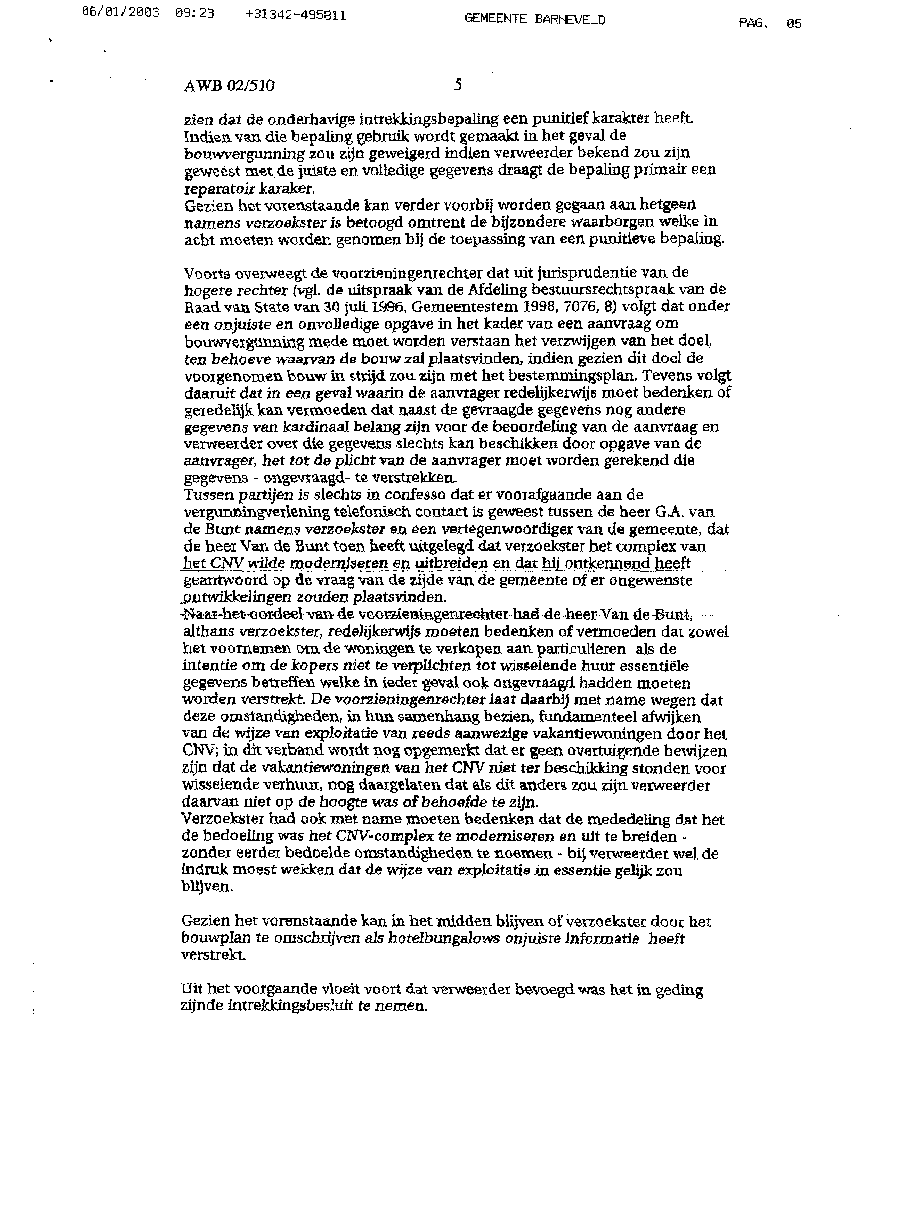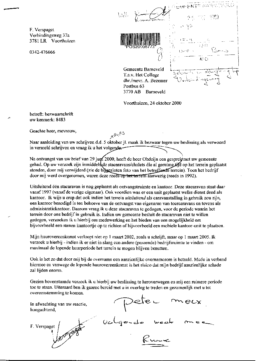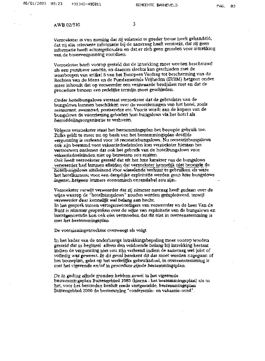Voorlopige conclusie van Rietveld aan de recreanten en semi-permanente bewoners