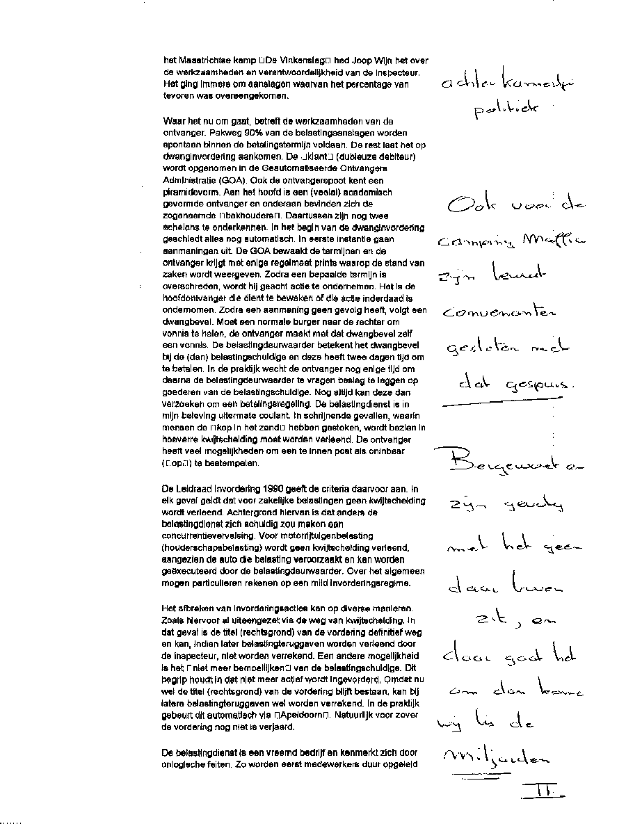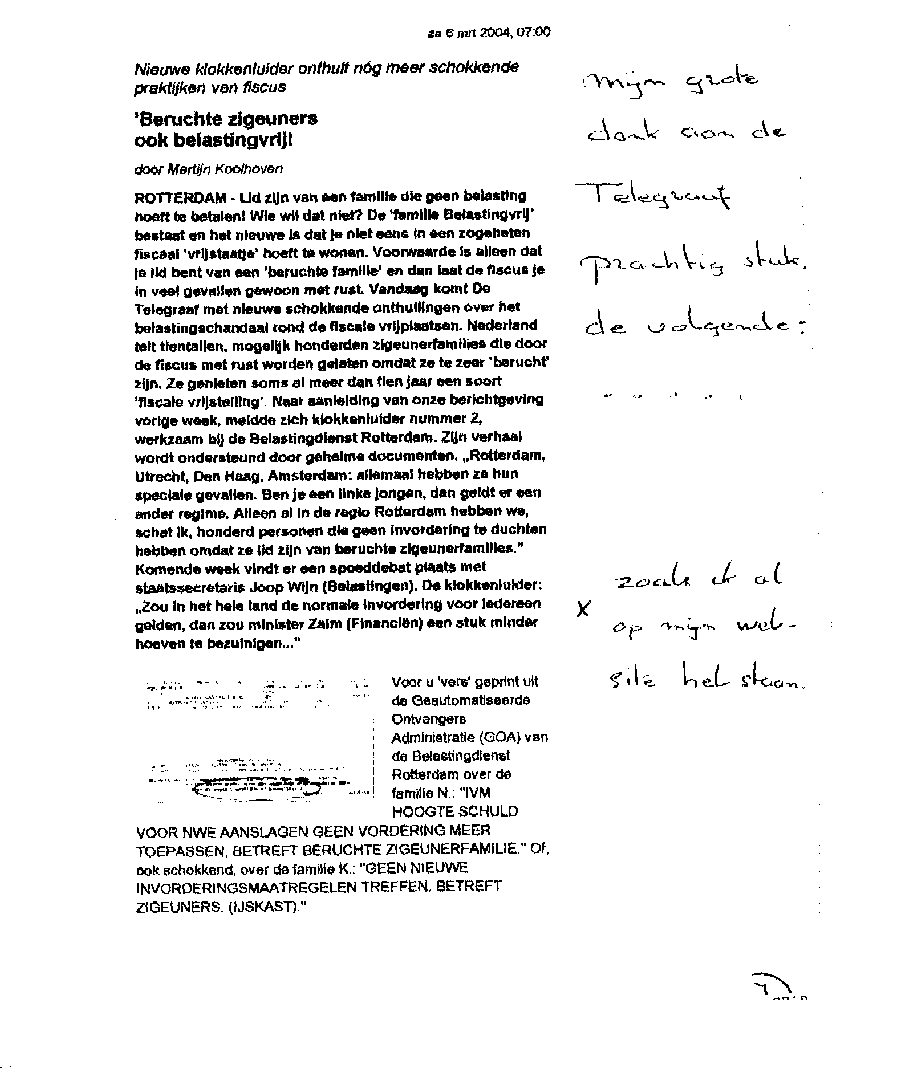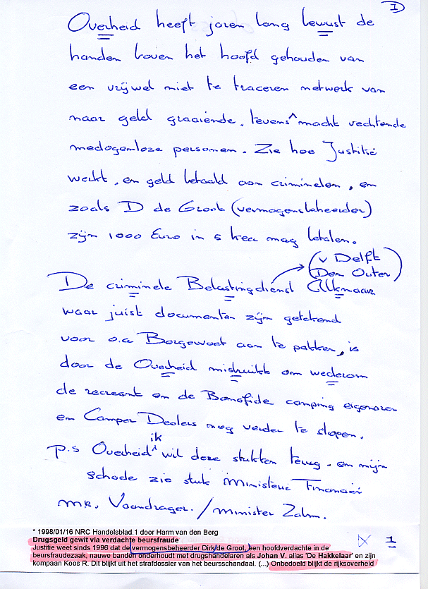 Verder laat ik u weten dat wij met ons allen miljoenen uitgegeven hebben om de Belastingdienst in 1998 vanuit Lelystad een groot onderzoek te laten doen naar de praktijken van de campingmaffia. Ook ik ben daar voor gevraagd met een overeenkomst die ik met documenten nog naar buiten zal laten komen. Ik heb een reden om dit te doen. De recreatieparken tycoon en zijn advocatentuig blijken zeer wel in staat geweest te zijn om de fiscus te tillen. Dat zij daartoe in staat geweest zijn zal ik aantonen met bewijzen van omkoping, smeergeld, mensen af laten luisteren door het zelfde ISP als wat de politiek beveiligt [v.d. Woude] die ook betaald is door Bergervoet. Wat doet de overheid met deze wetenschap niets?