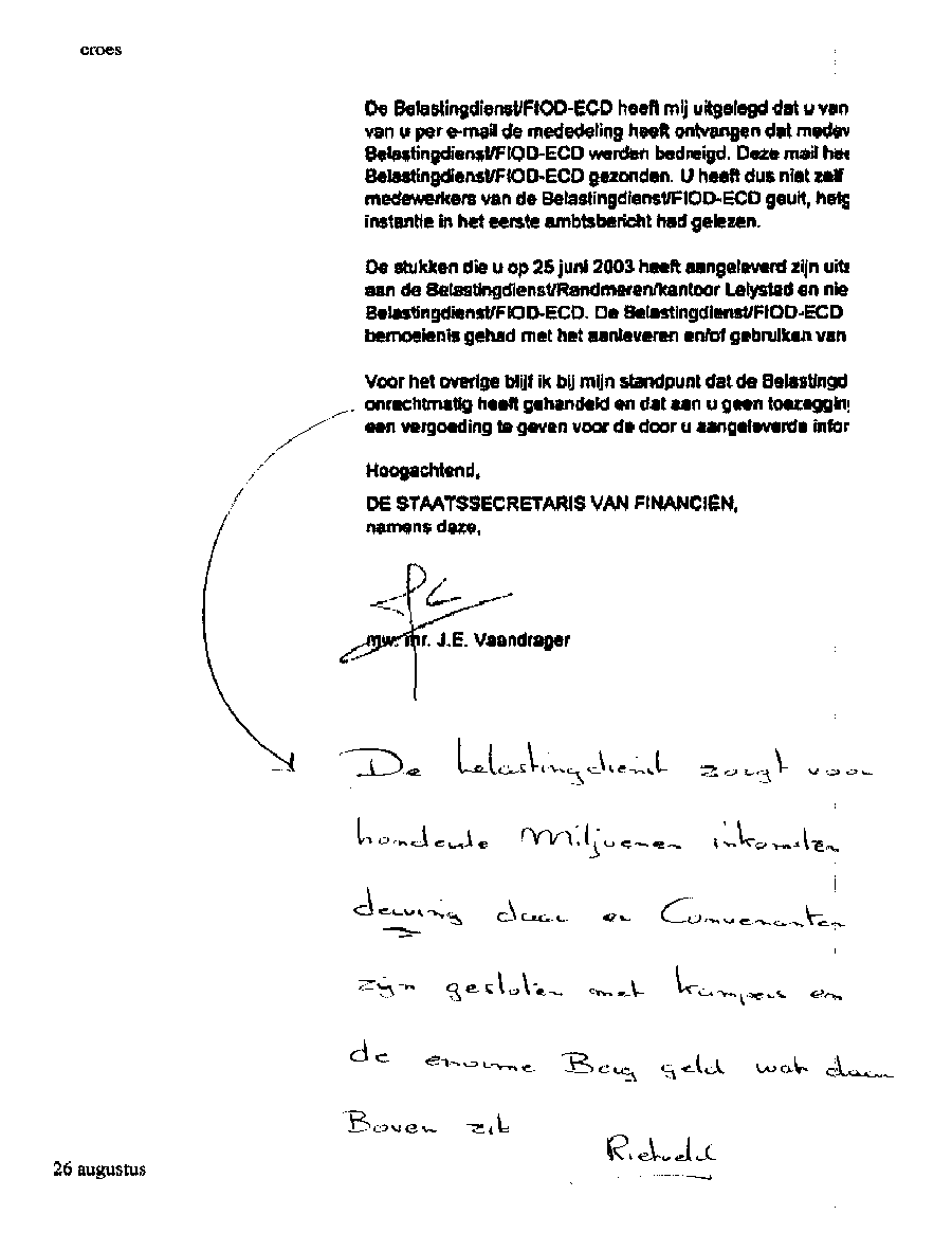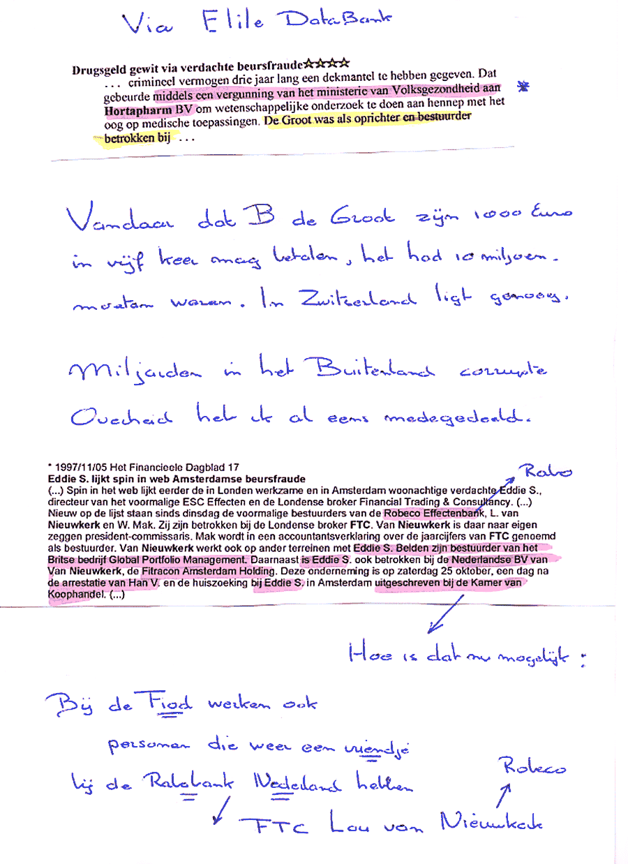 " is bewijsbaar opgezet met een bundeling van smerige en misdadige handelingen, die nota bene nauwkeurig is bekeken door de FIOD in Haarlem waarna op hun verzoek aangifte is gedaan bij de politie.