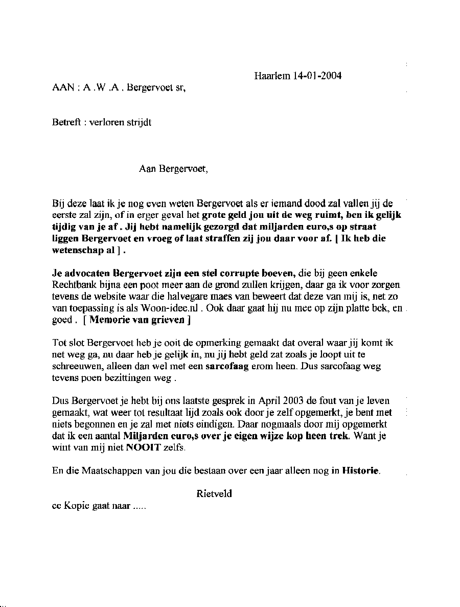 Brief aan SDN met de sommatie om de website van Rietveld te verwijderen