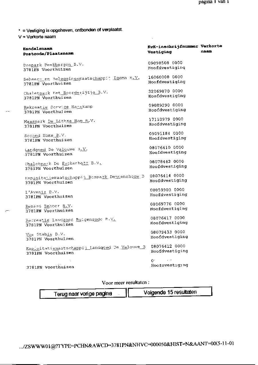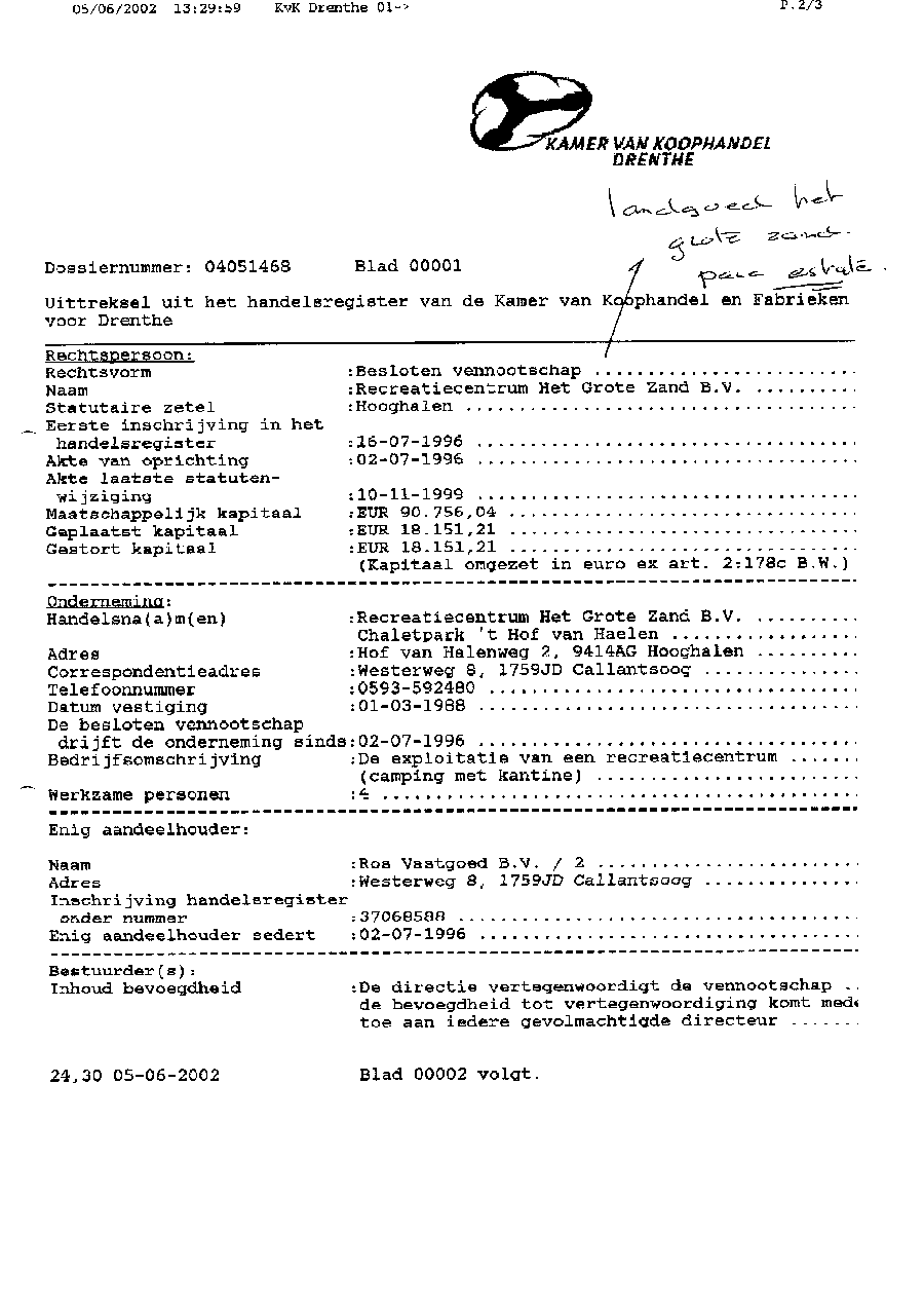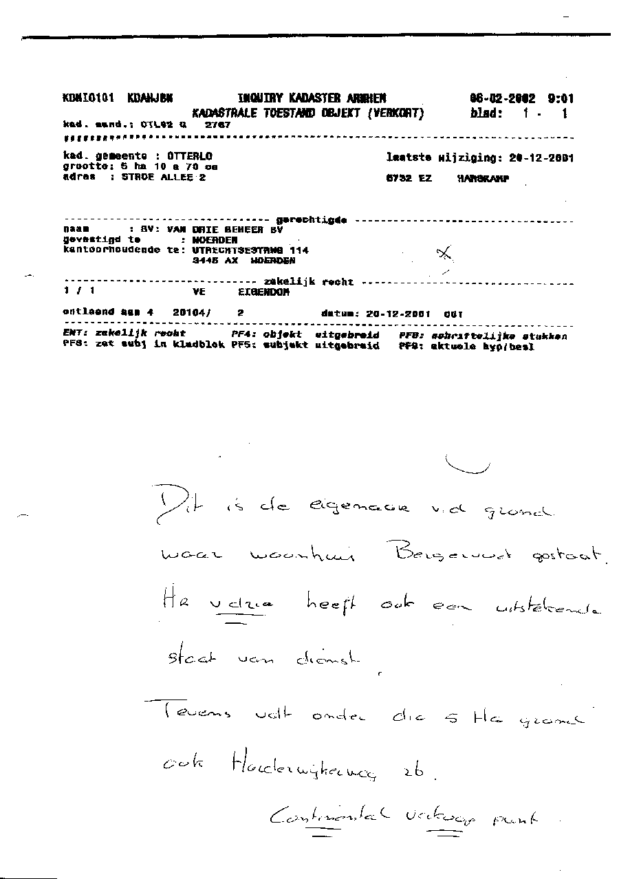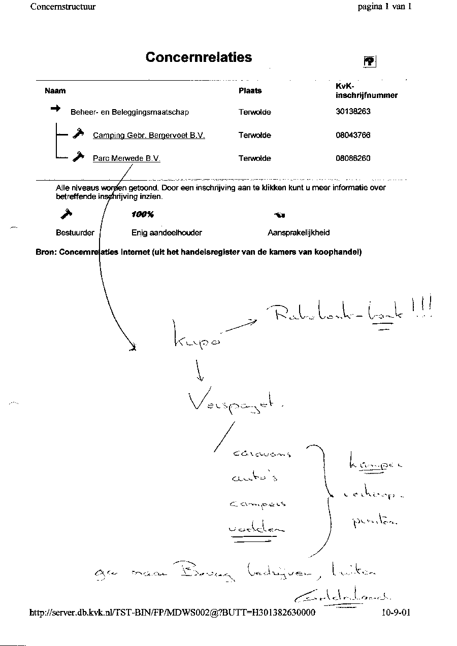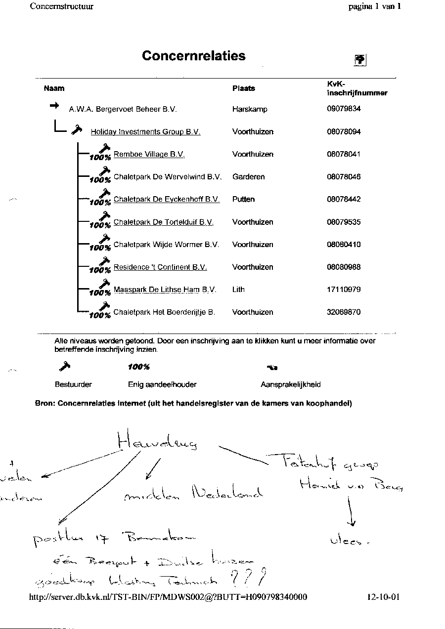 Kadastergegevens Kamer van Koophandel van conglomeraat van parken van Bergervoet sr.