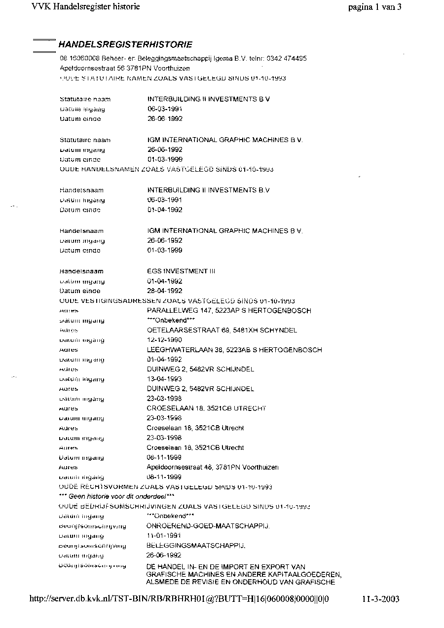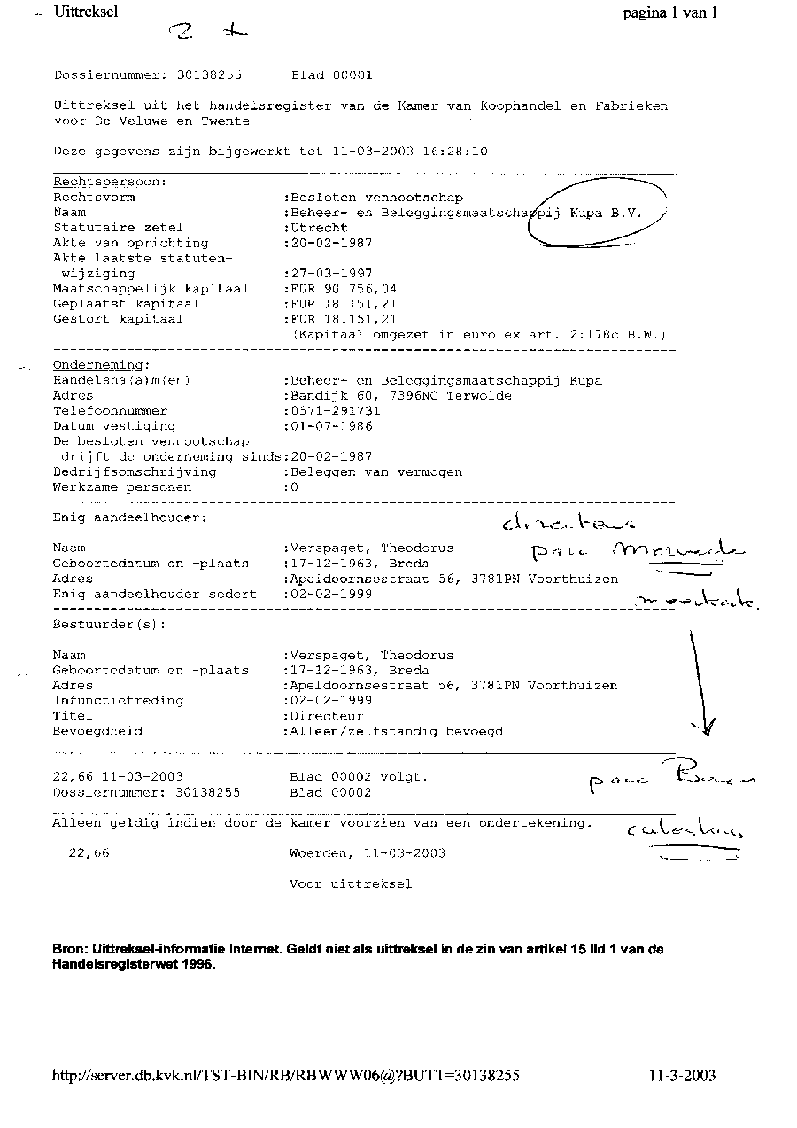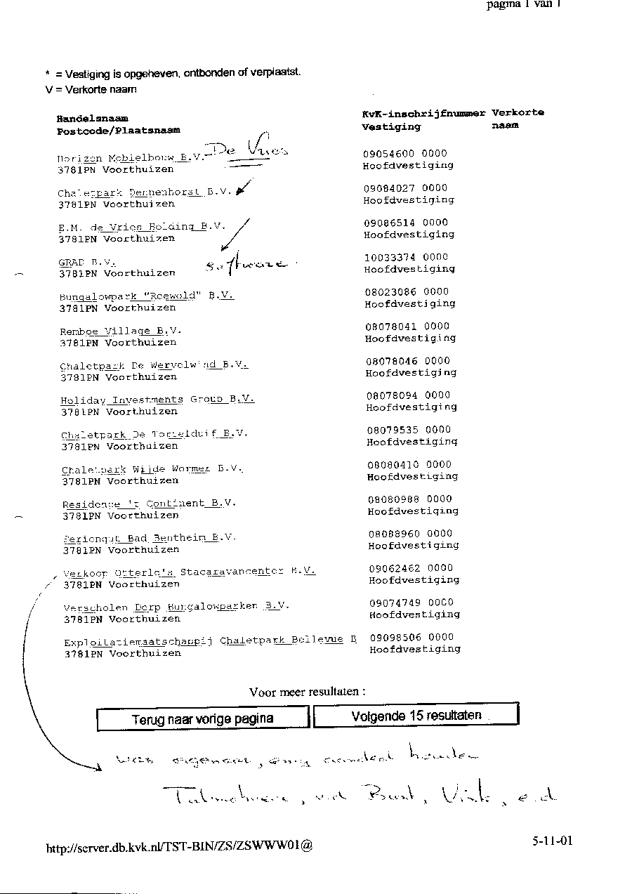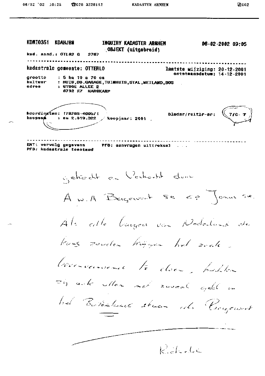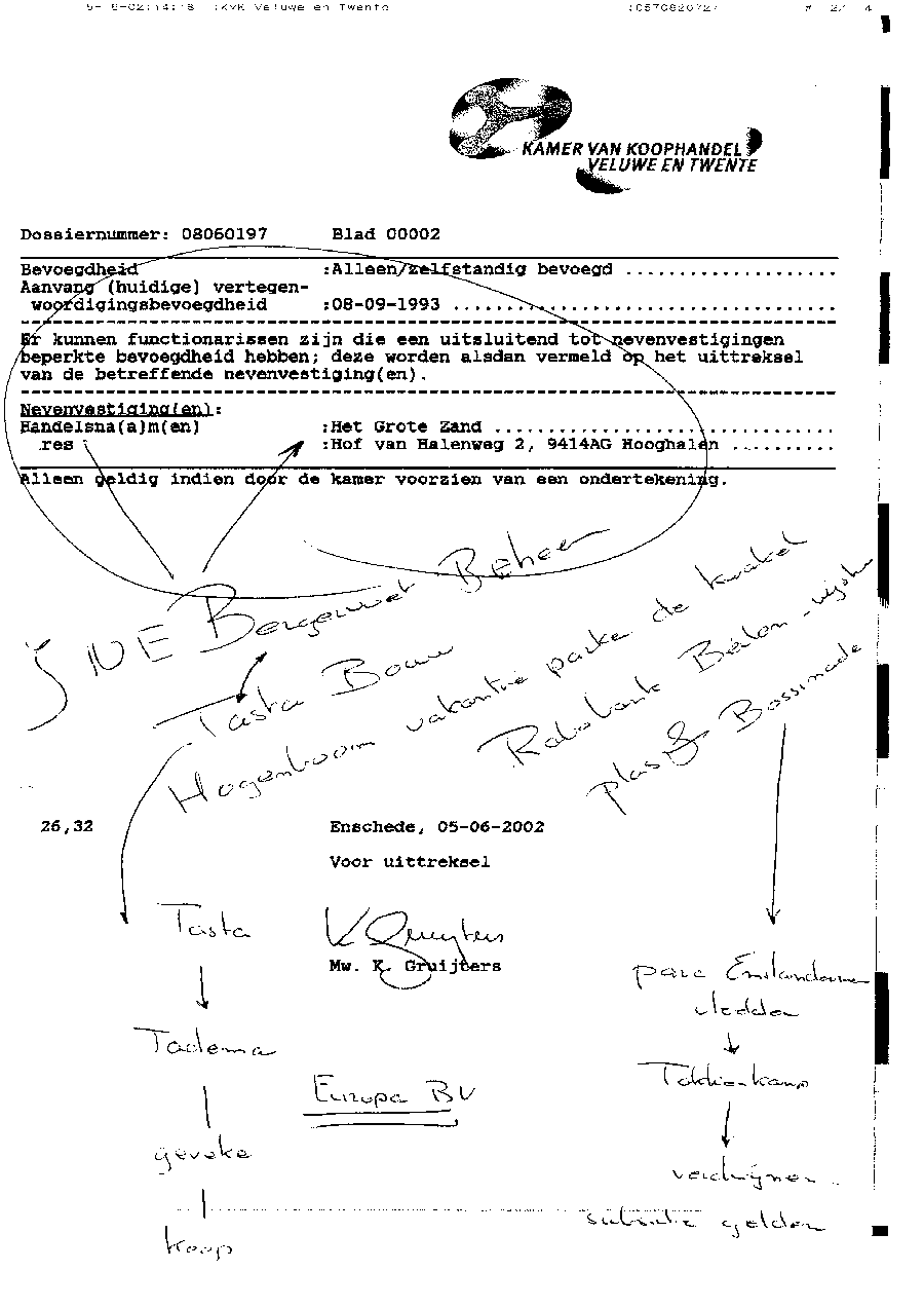 Kadastergegevens Kamer van Koophandel van conglomeraat van parken van Bergervoet sr.