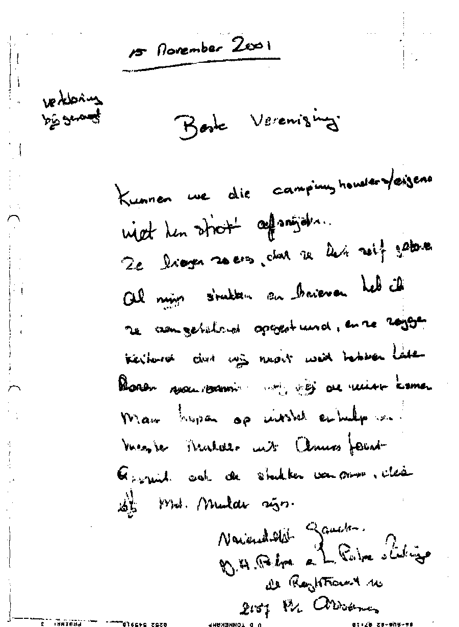 Voorlopige conclusie van Rietveld aan de recreanten en semi-permanente bewoners