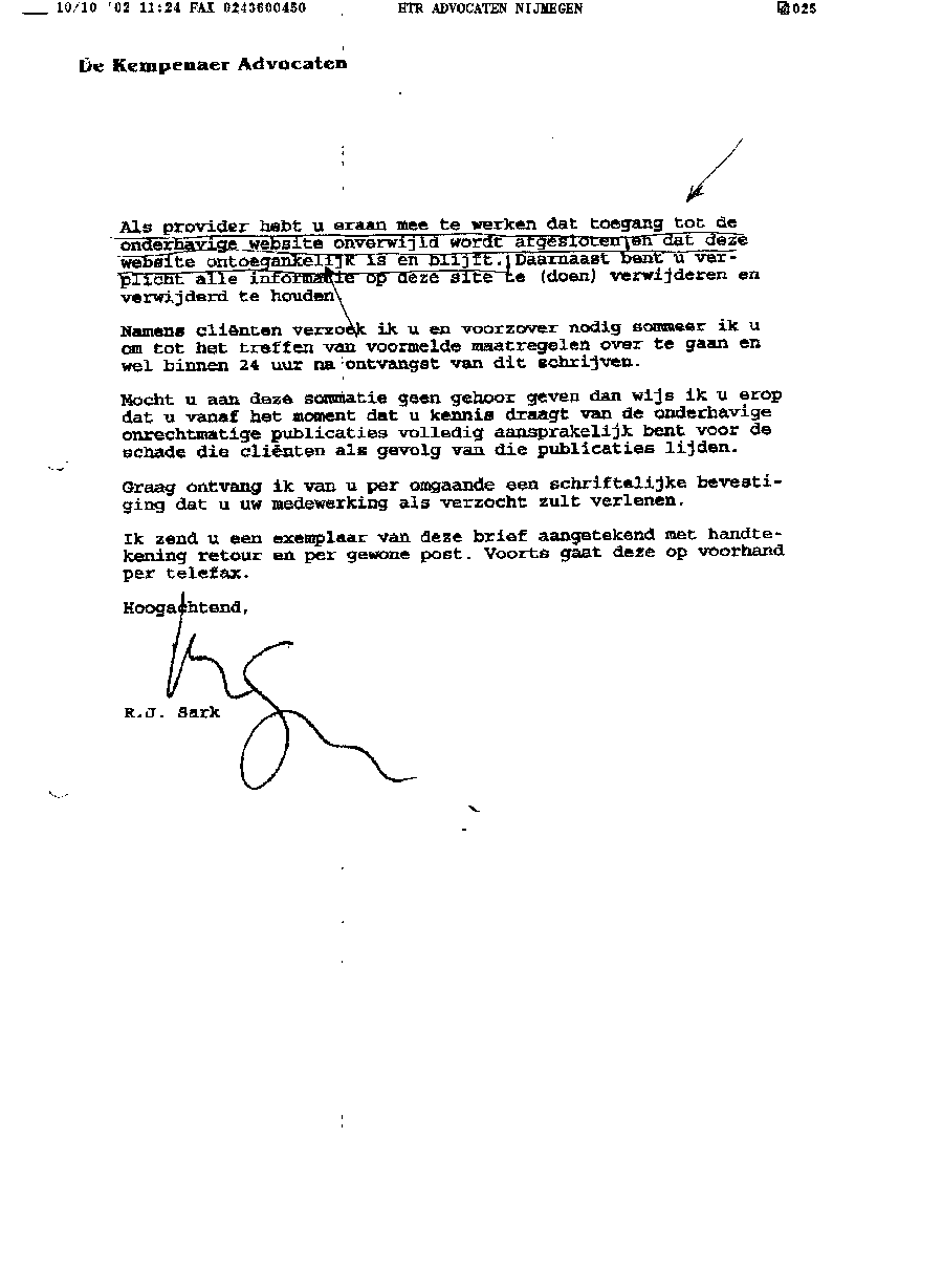 Faxbericht aan mr. Maes van Kees Griesdoorn over schijneisers