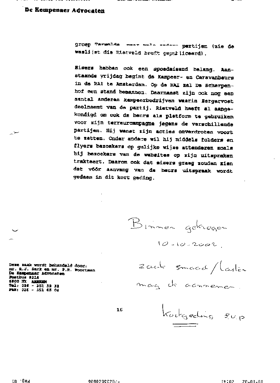 Document met procedure tegen mr. Maes van Dommerholt & van Dijk in Zwolle