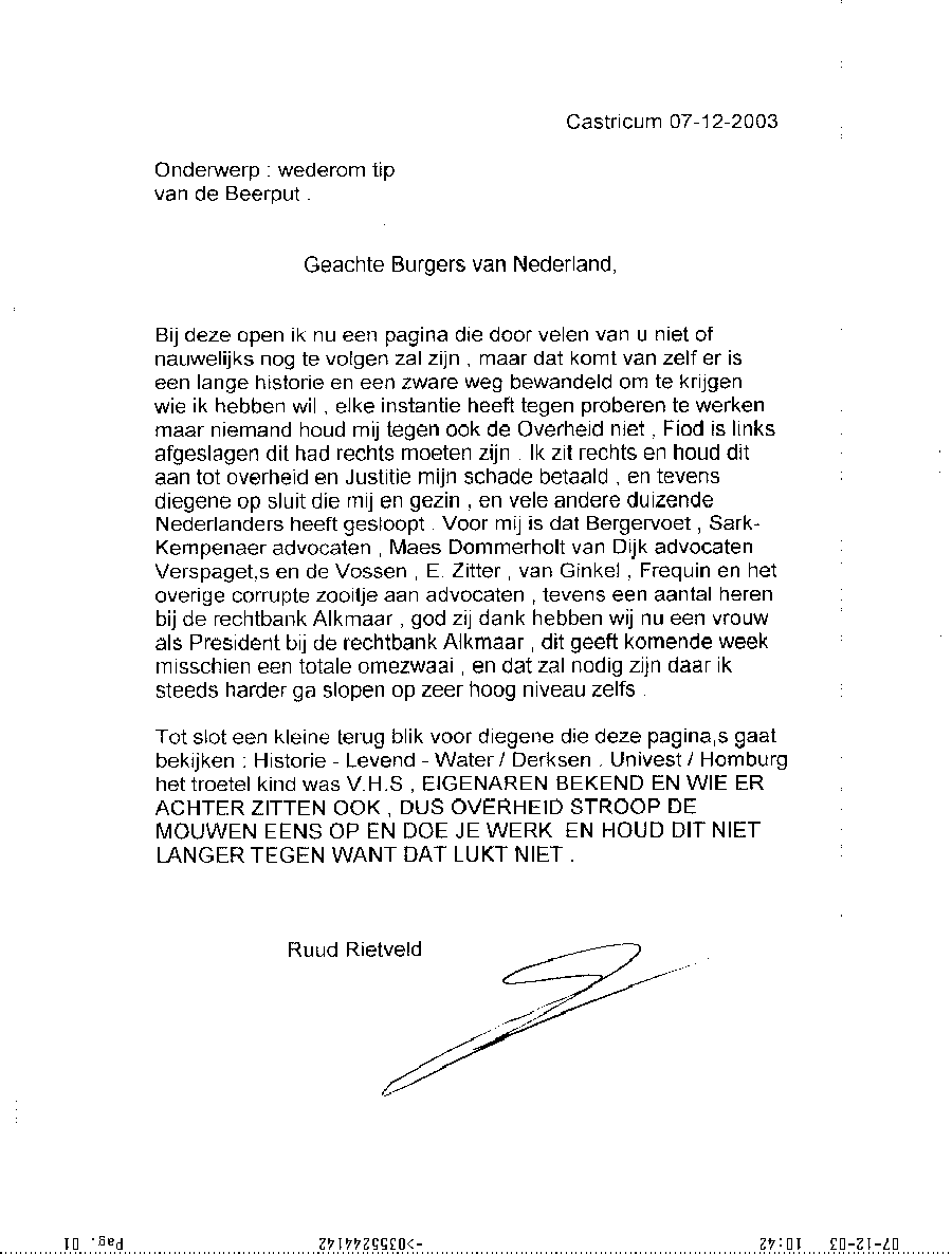 Een serie losse aantijgingen tegen mij (Rietveld) wegens onjuiste, vermeende kwalijke zaken