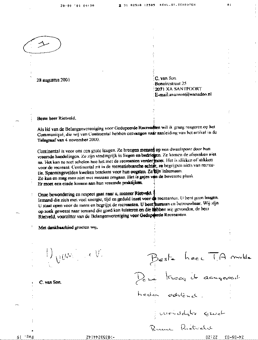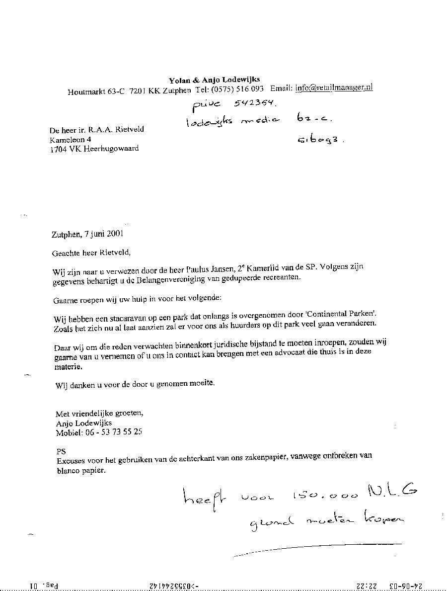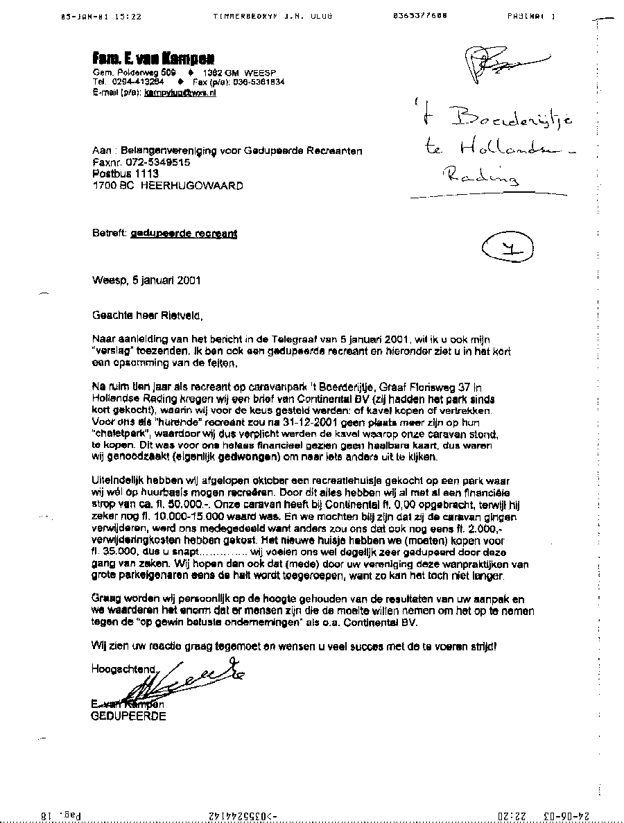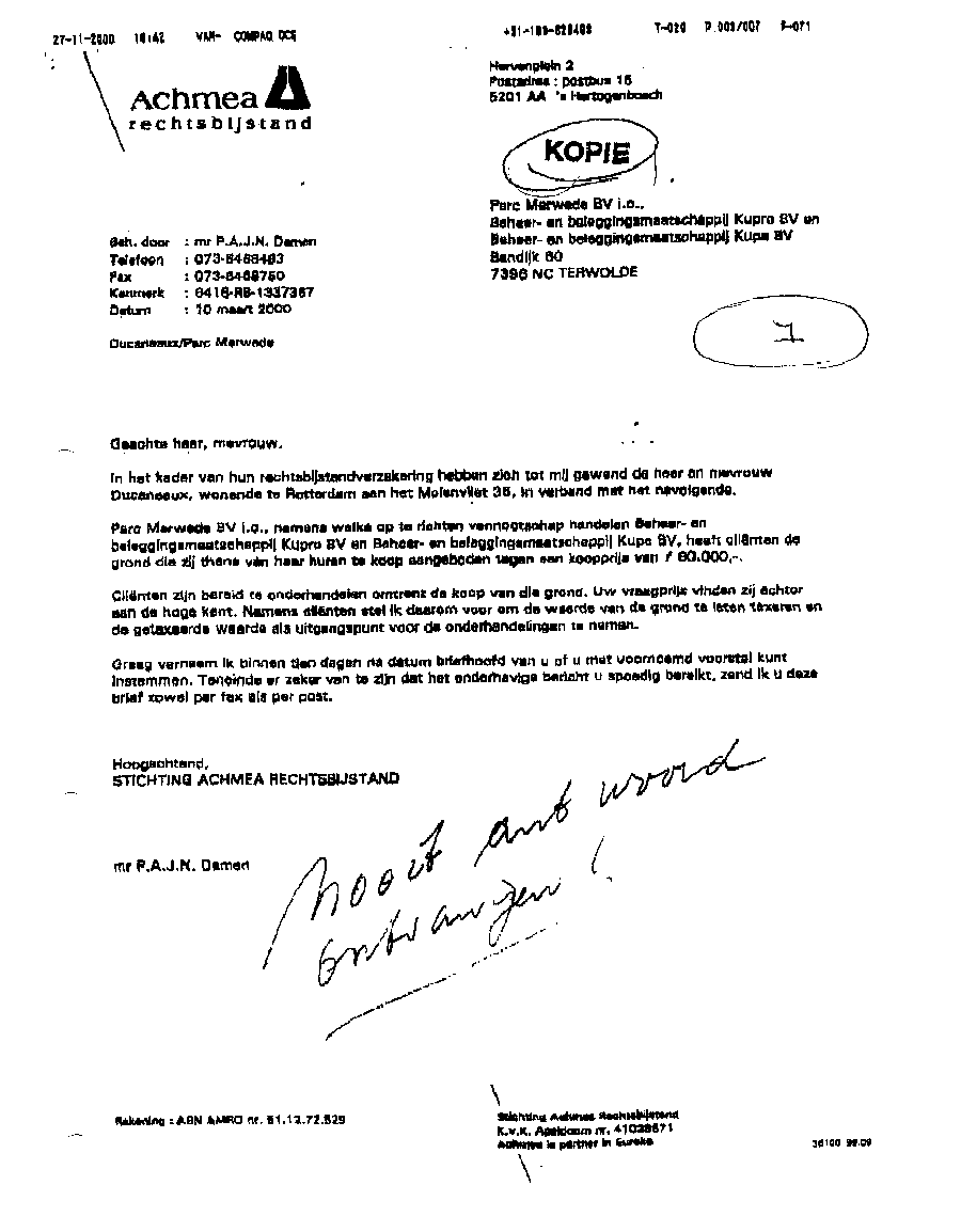 Faxbericht aan mr. Maes van Kees Griesdoorn over schijneisers