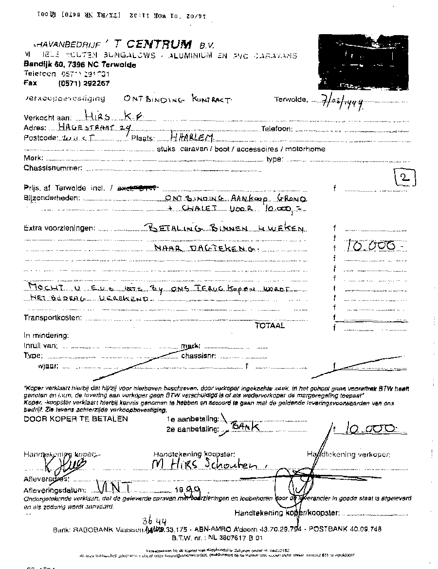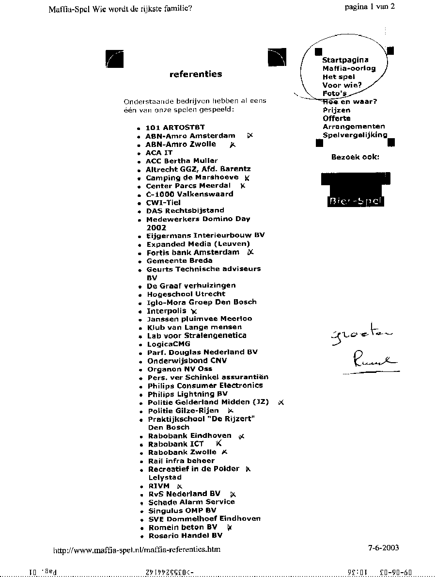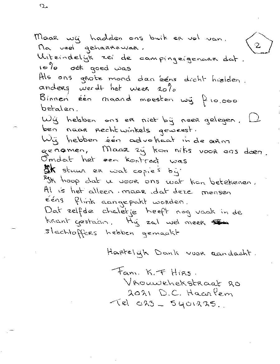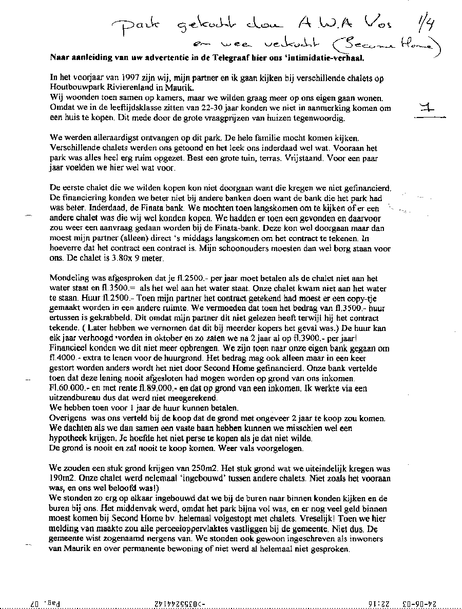 Faxbericht aan mr. Maes van Kees Griesdoorn over schijneisers