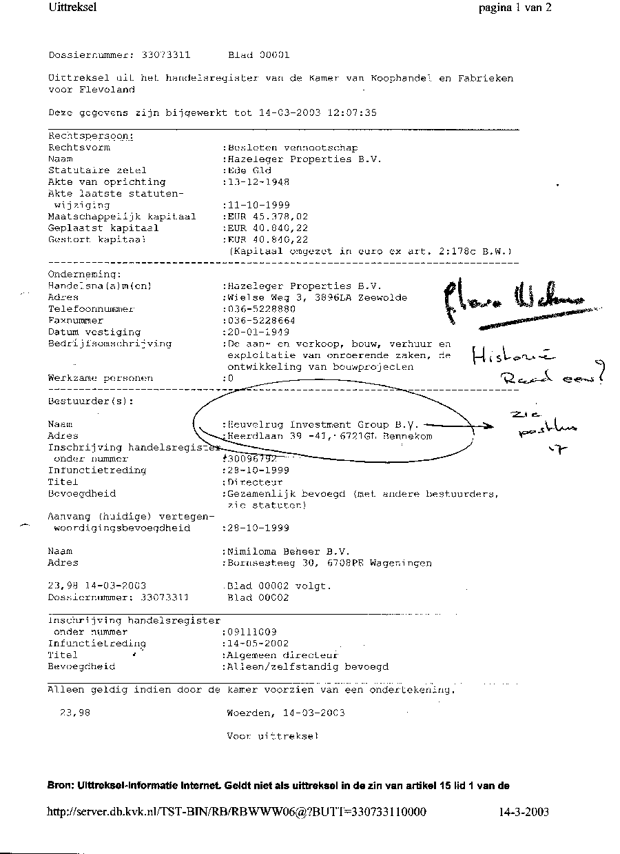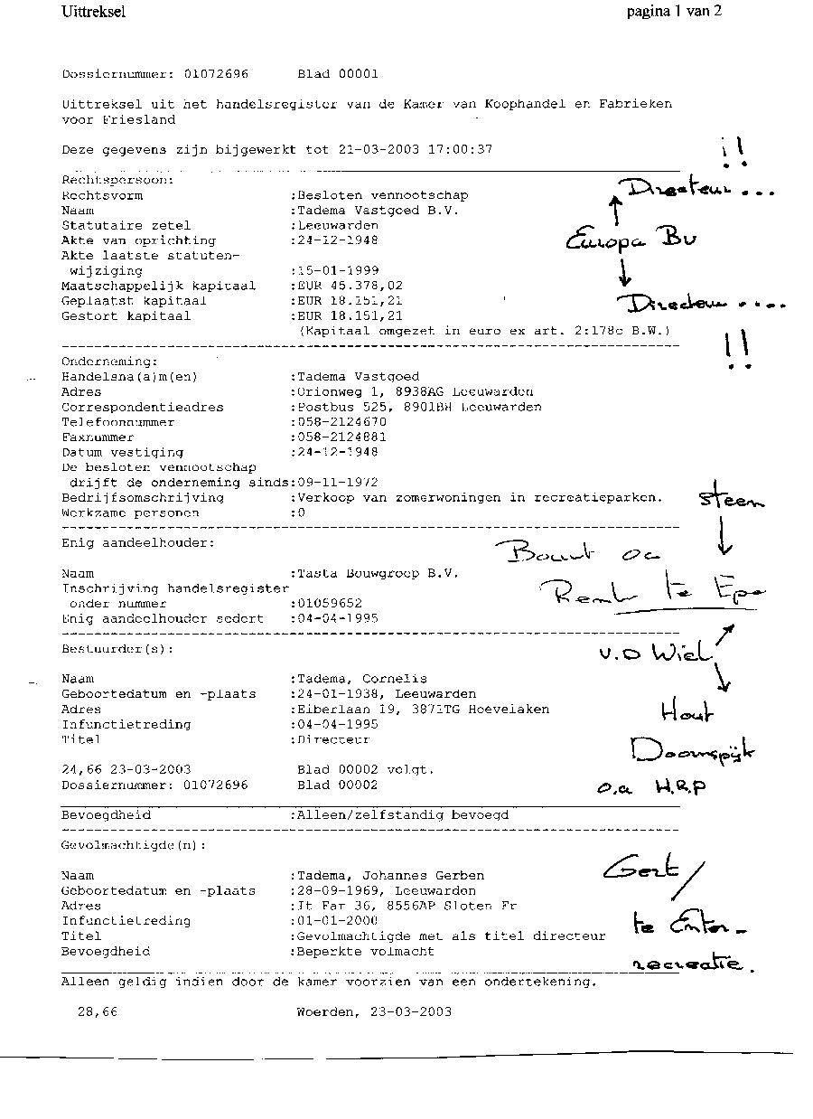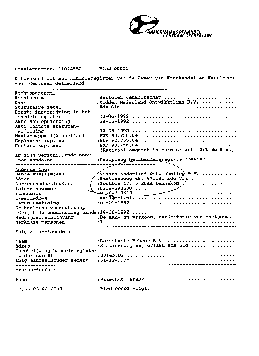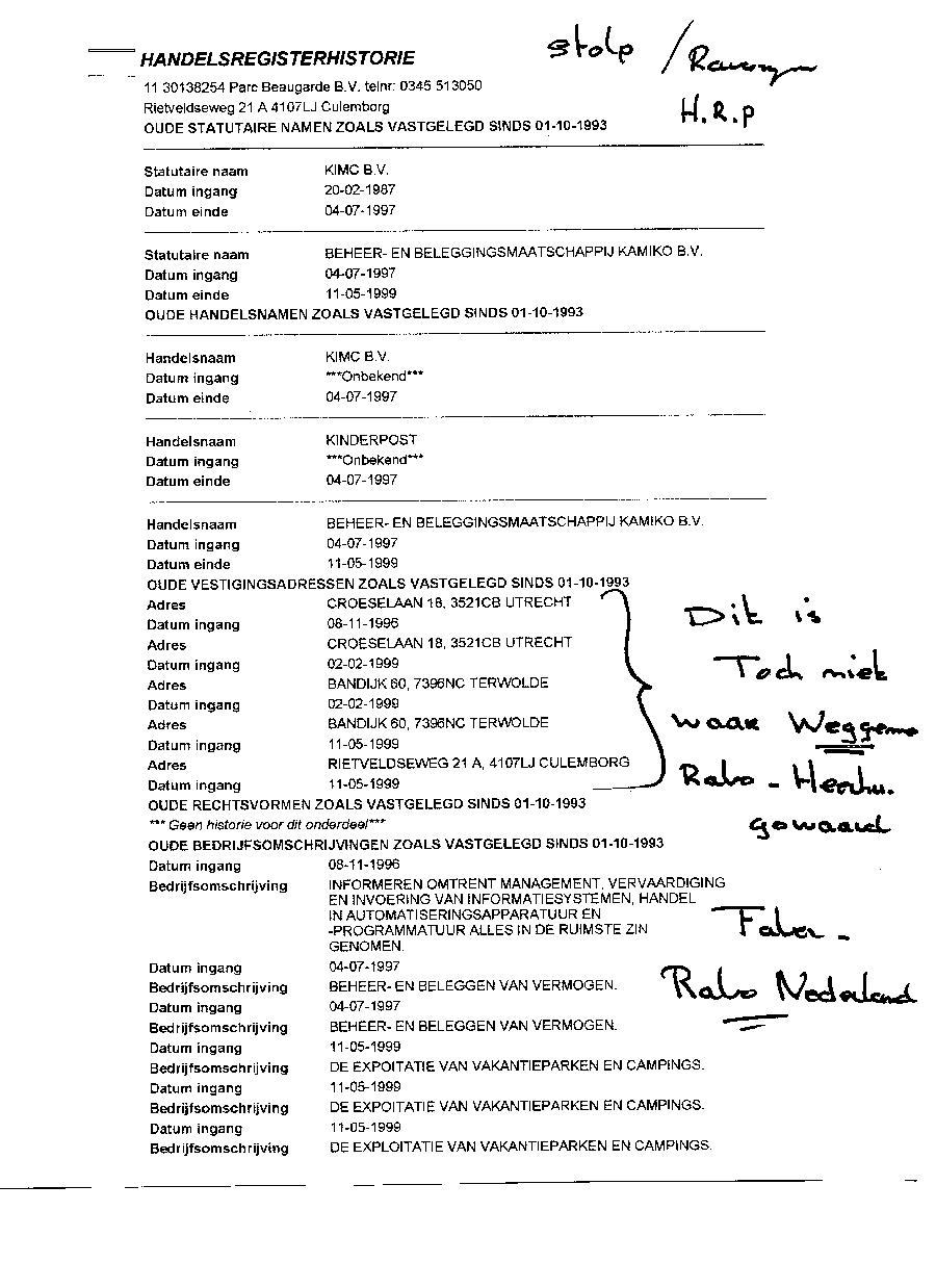 Kadastergegevens Kamer van Koophandel van conglomeraat van parken van Bergervoet sr.