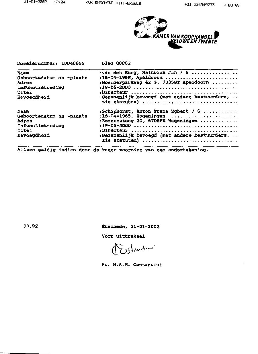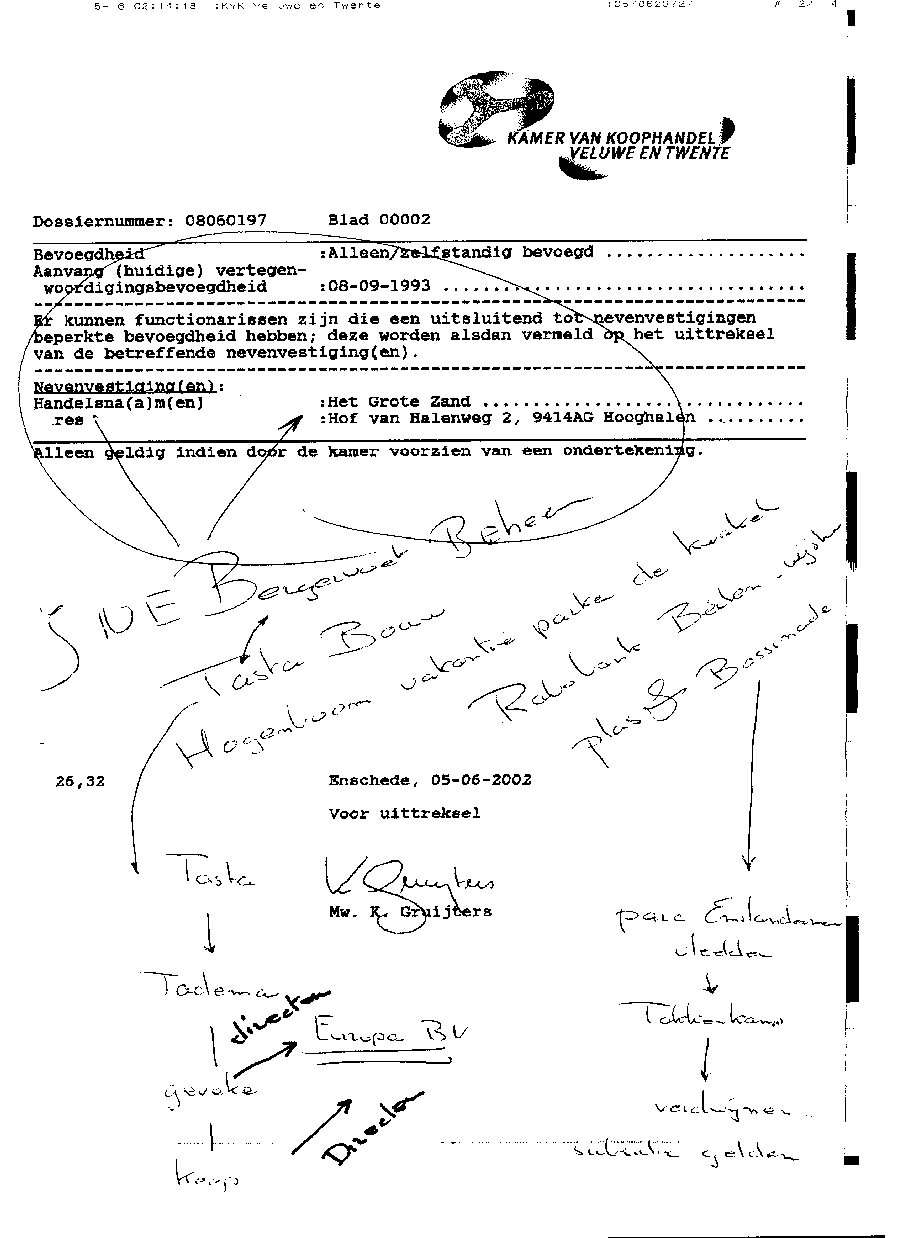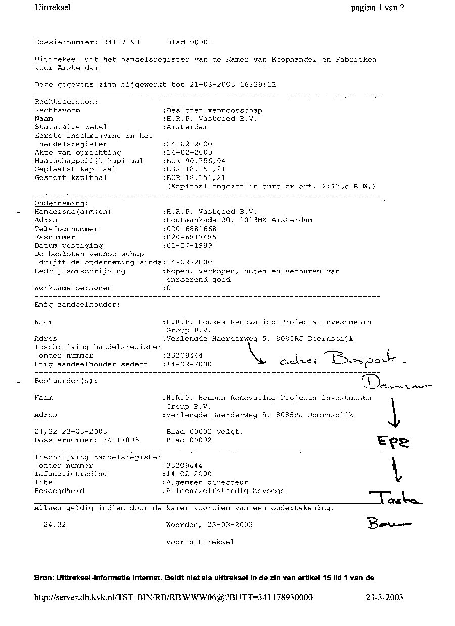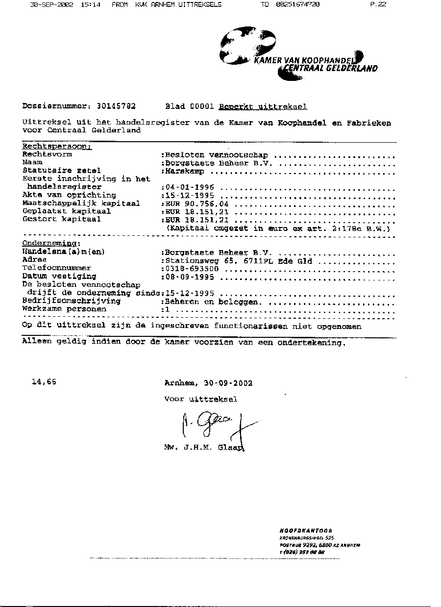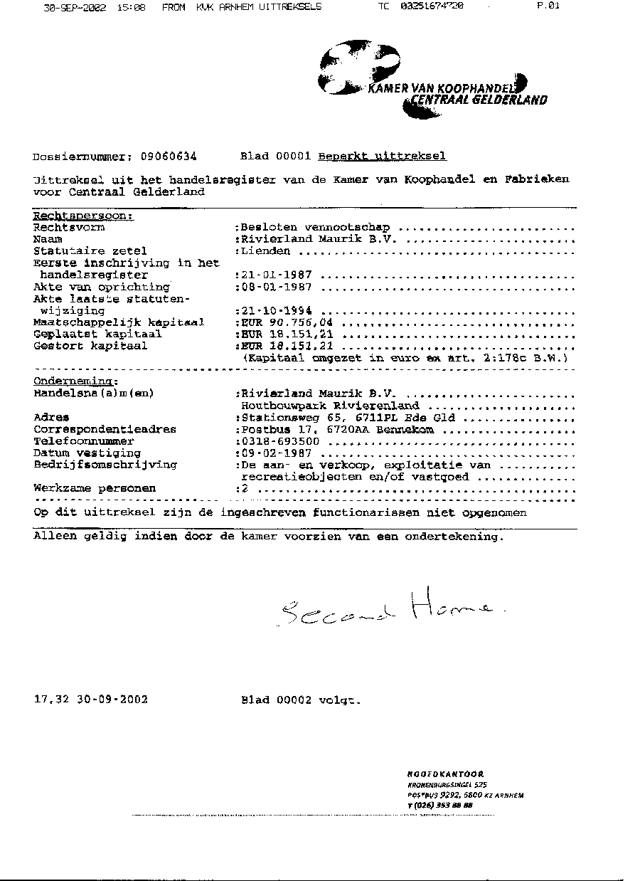 Kadastergegevens Kamer van Koophandel van conglomeraat van parken van Bergervoet sr.