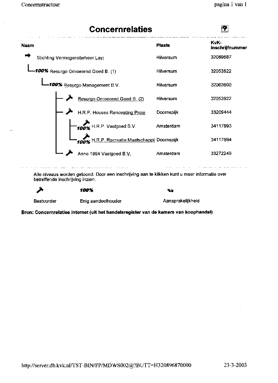 Kadastergegevens Kamer van Koophandel van conglomeraat van parken van Bergervoet sr.