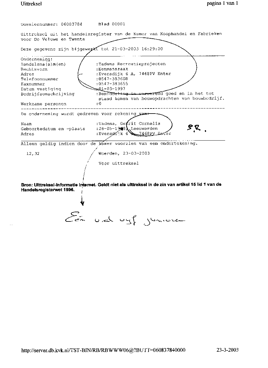 Kadastrale gegevens en in- en uitschrijvingen bij de Kamer van koophandel
