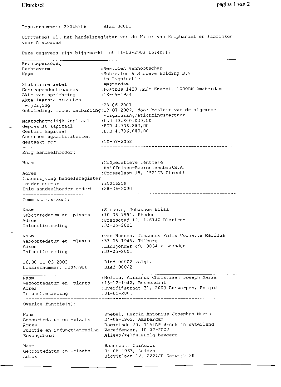 Achtergrond over de handelsregisterhistorie van Aegon Recreatie BV