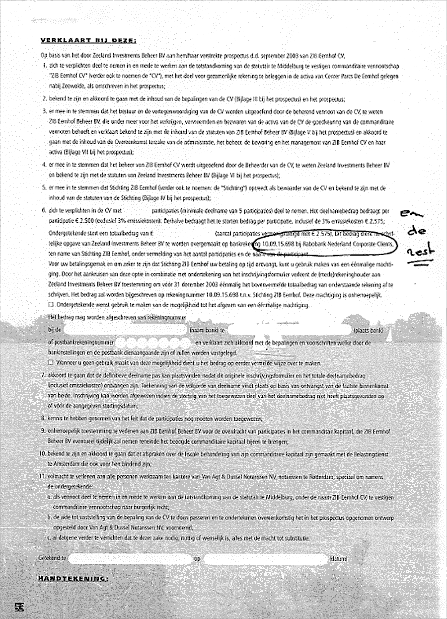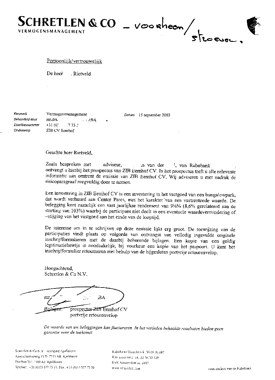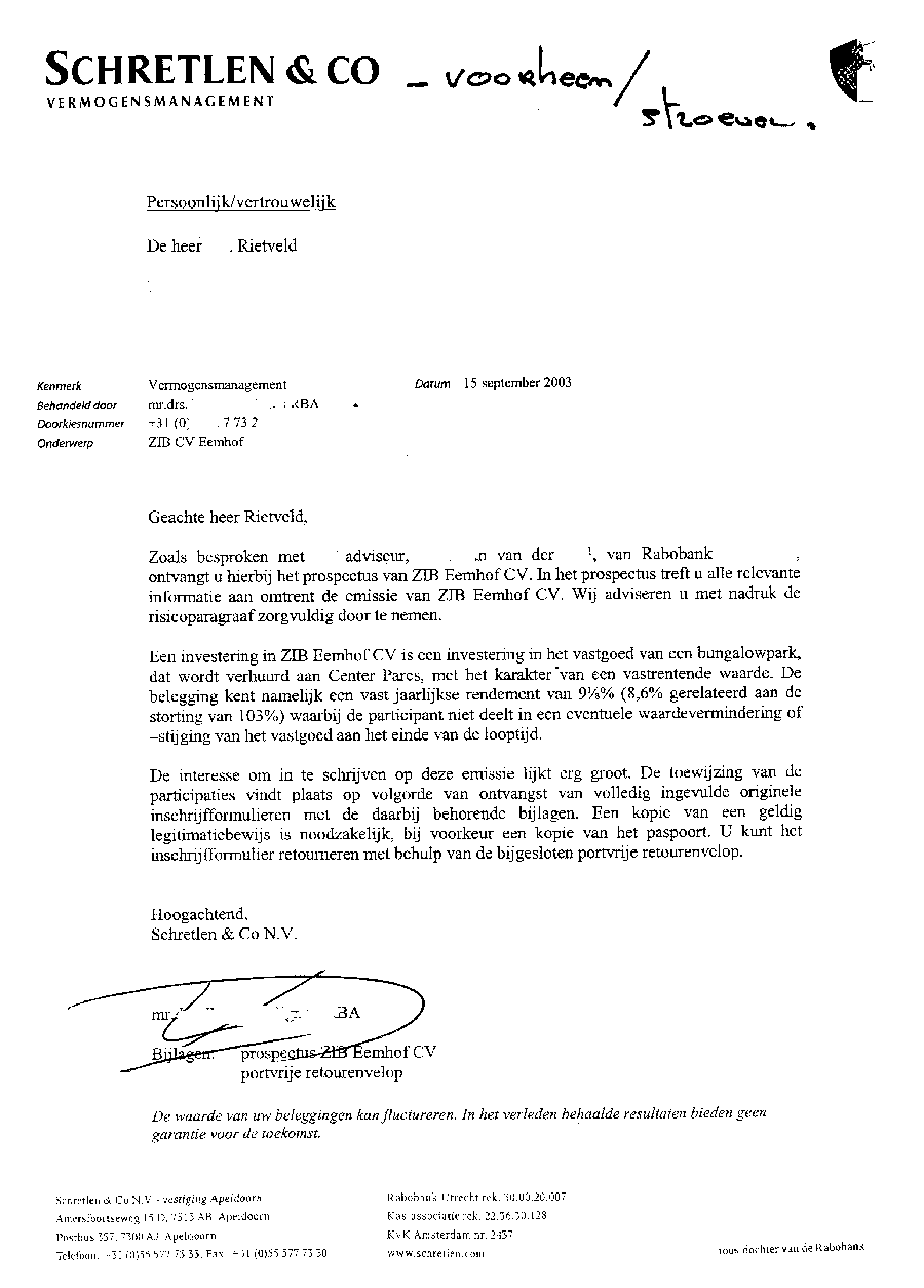 Bewijs van verstrengeling van de Rabobank met de beleggers in de recreatieparken