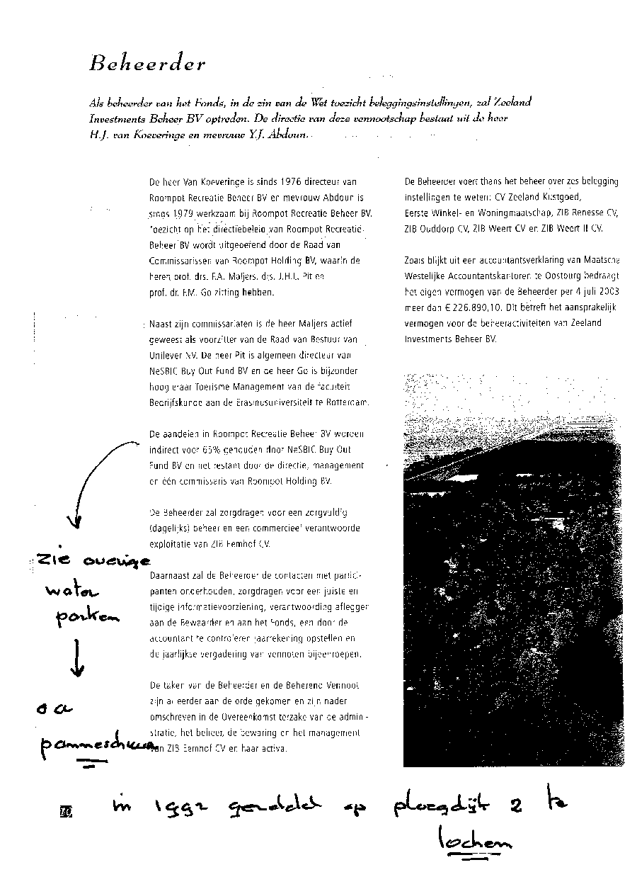 Kadastergegevens Kamer van Koophandel van conglomeraat van parken van Bergervoet sr.
