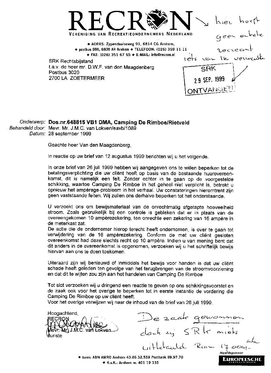 Document met procedure tegen mr. Maes van Dommerholt & van Dijk in Zwolle