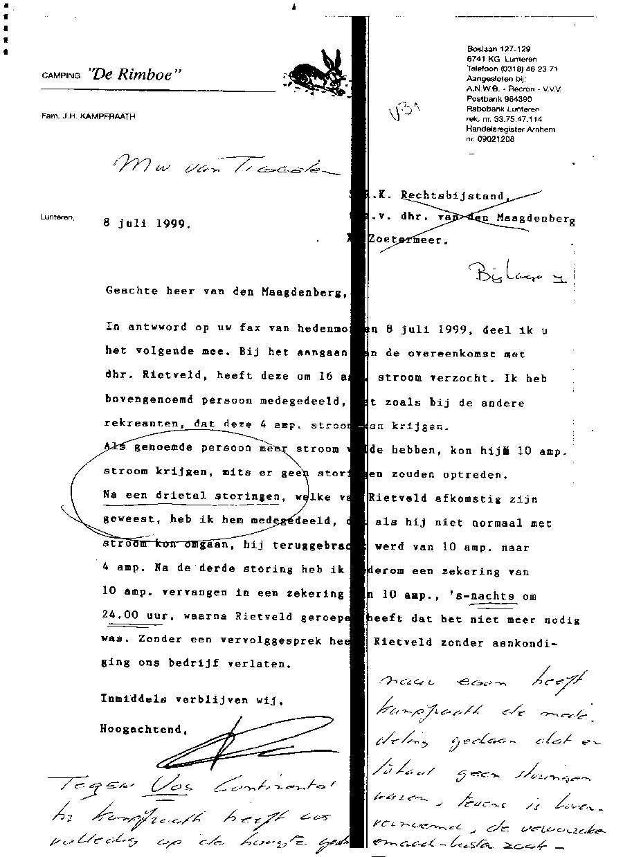 Voorlopige conclusie van Rietveld aan de recreanten en semi-permanente bewoners