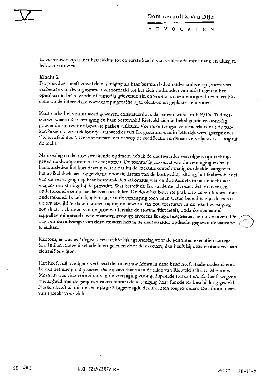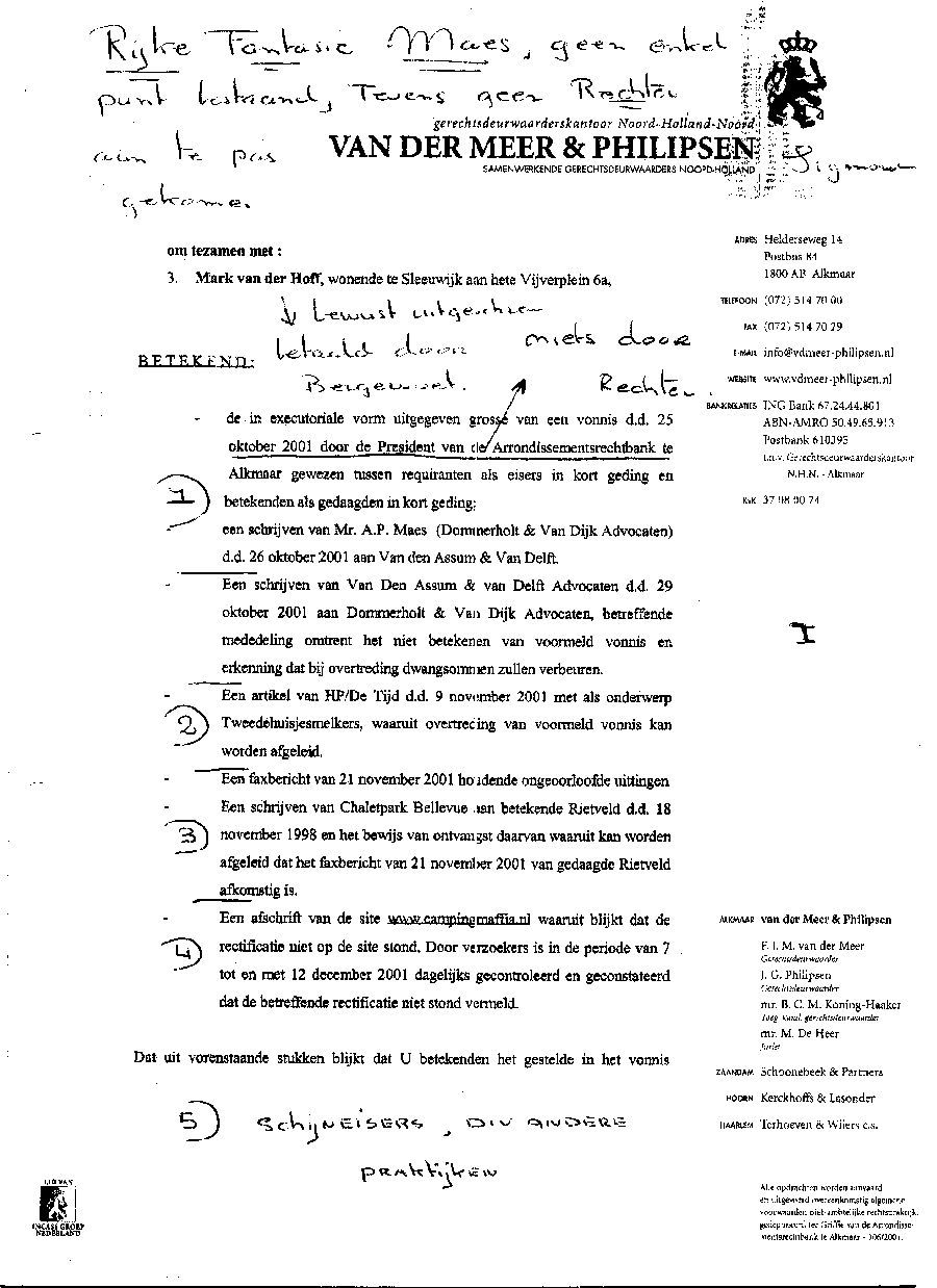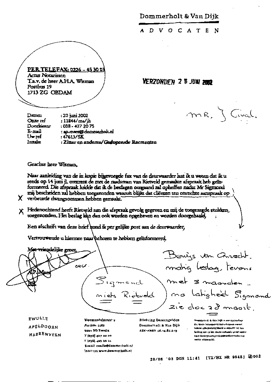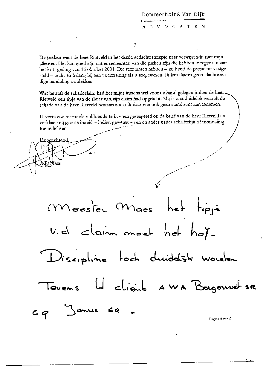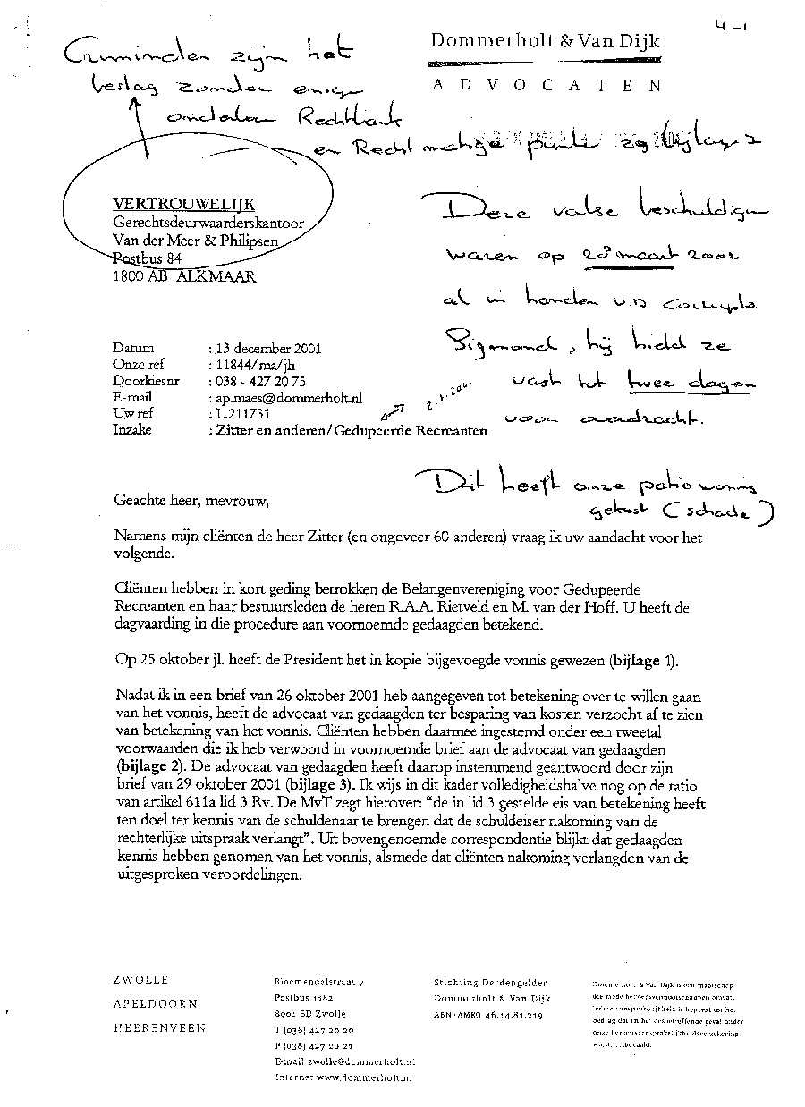 Document met procedure tegen mr. Maes van Dommerholt & van Dijk in Zwolle