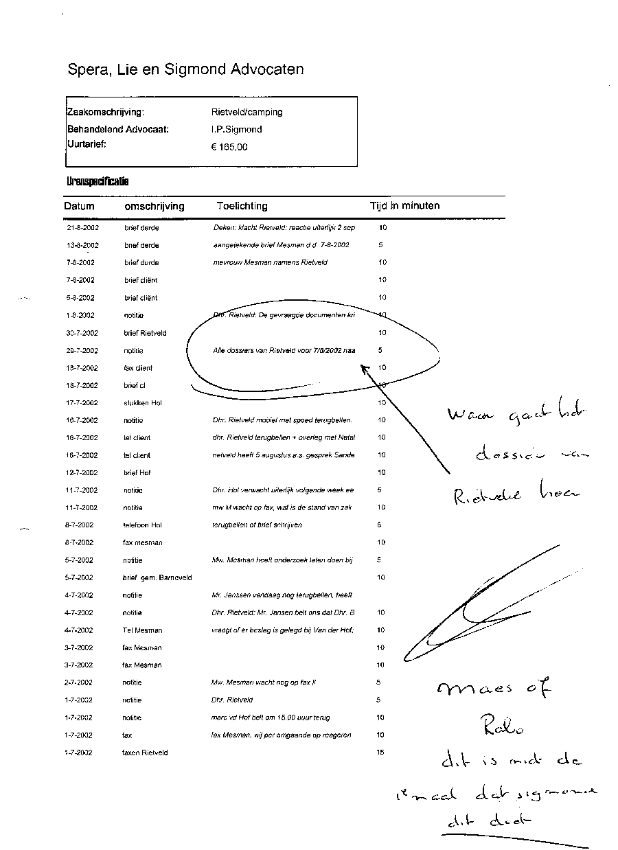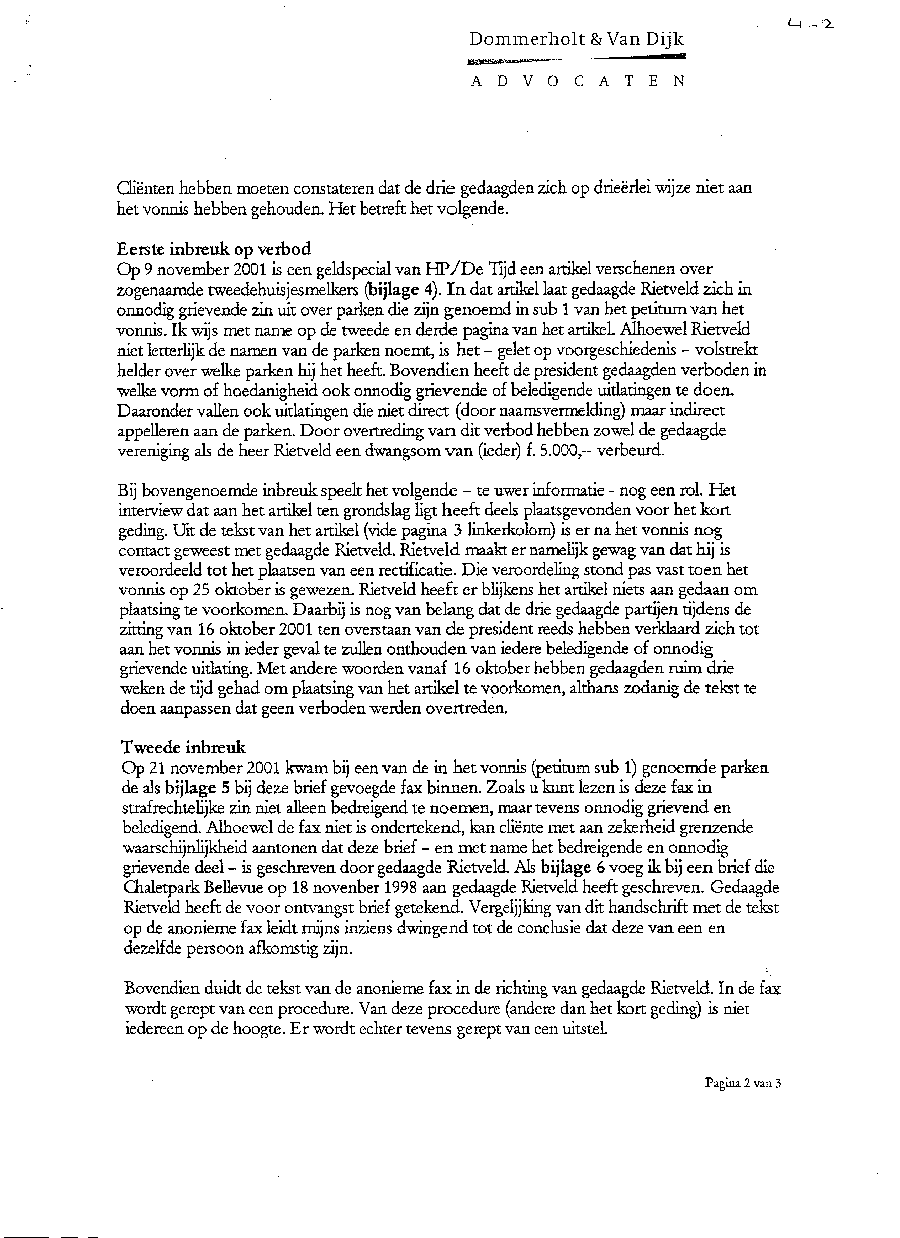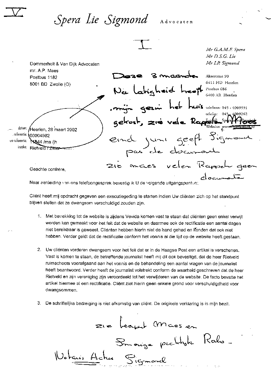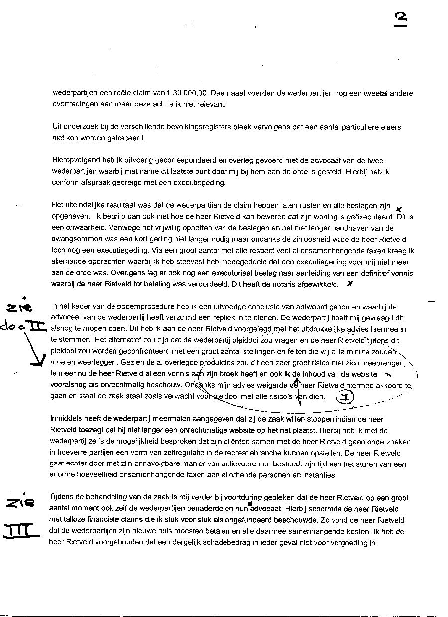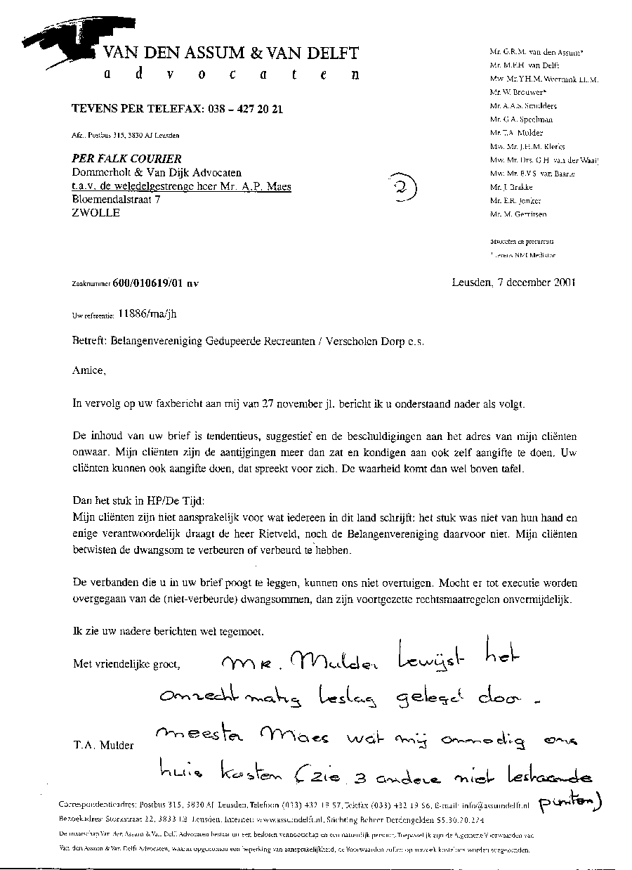 Document met procedure tegen mr. Maes van Dommerholt & van Dijk in Zwolle