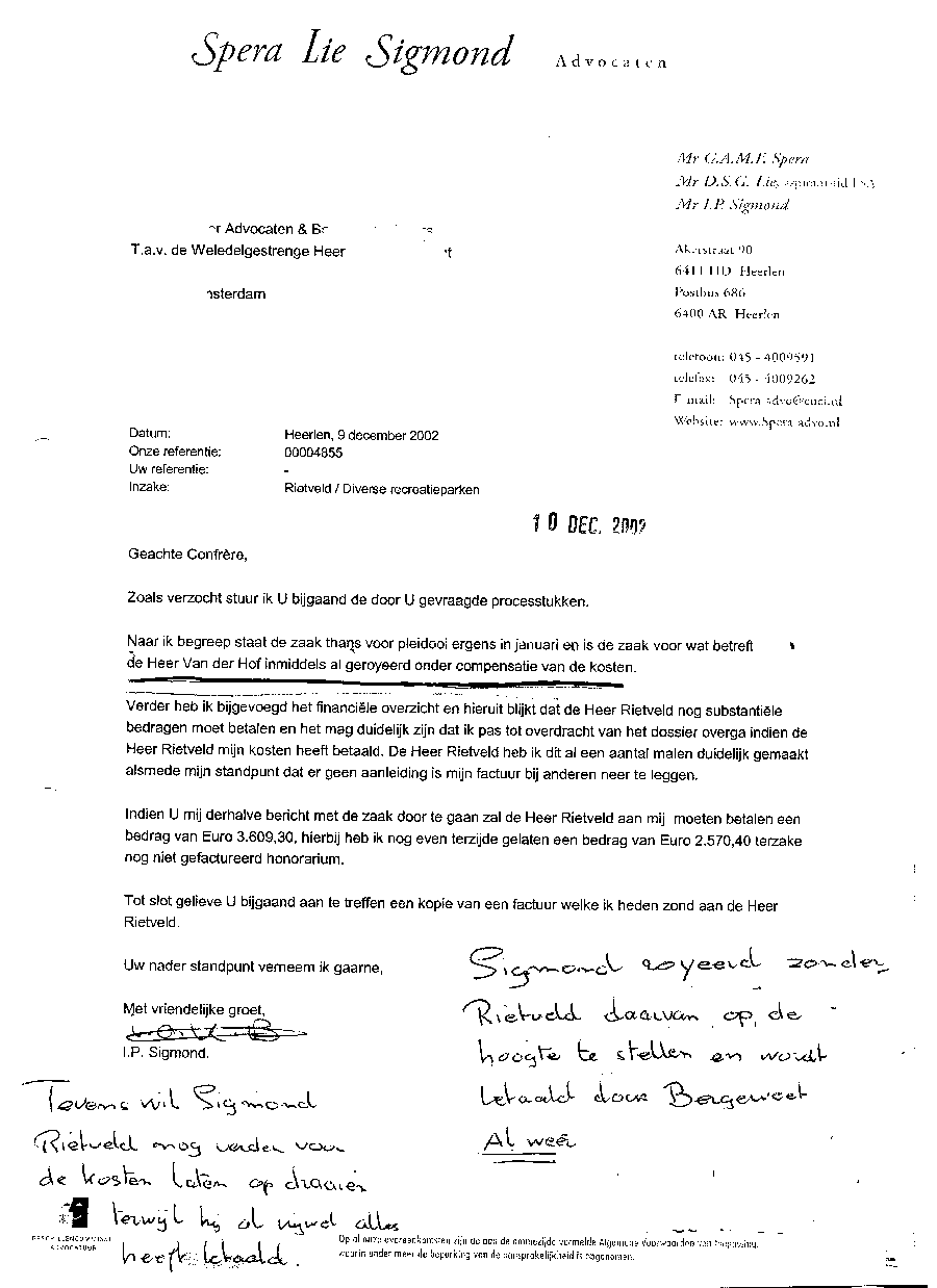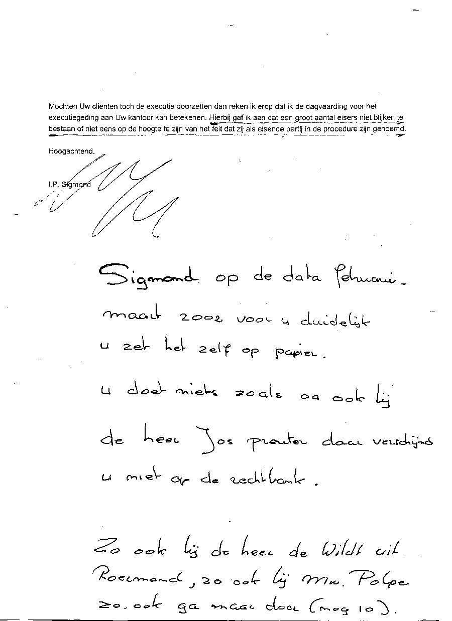 Verwijt aan mr. Sigmond over z'n inactiviteit. Wel betalen, maar niet kunnen halen!
