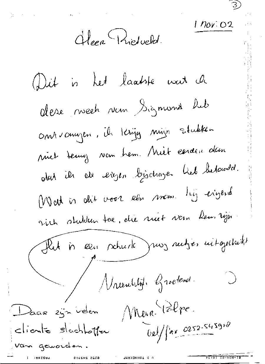 Faxbericht aan mr. Maes van Kees Griesdoorn over schijneisers
