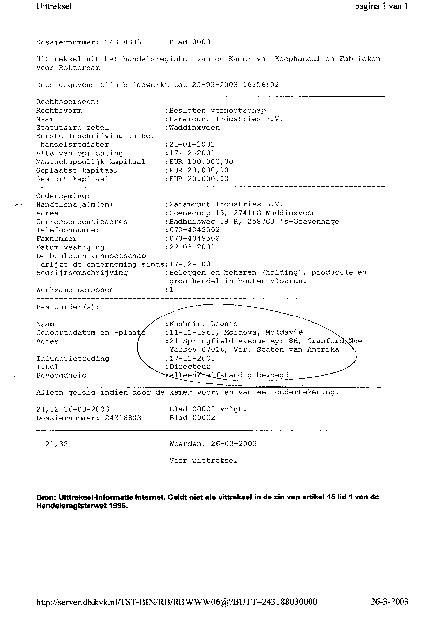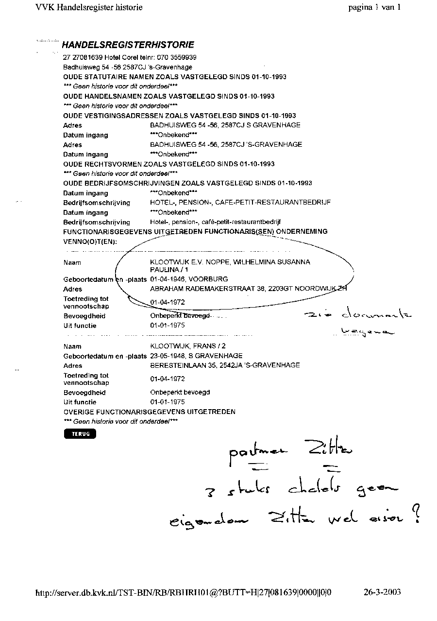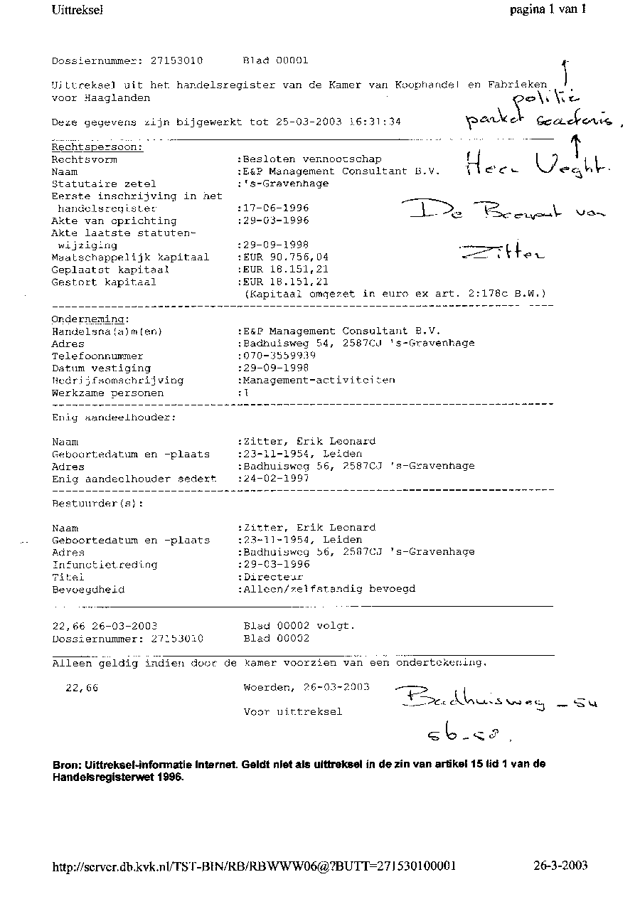 Kadastergegevens Kamer van Koophandel van conglomeraat van parken van Bergervoet sr.