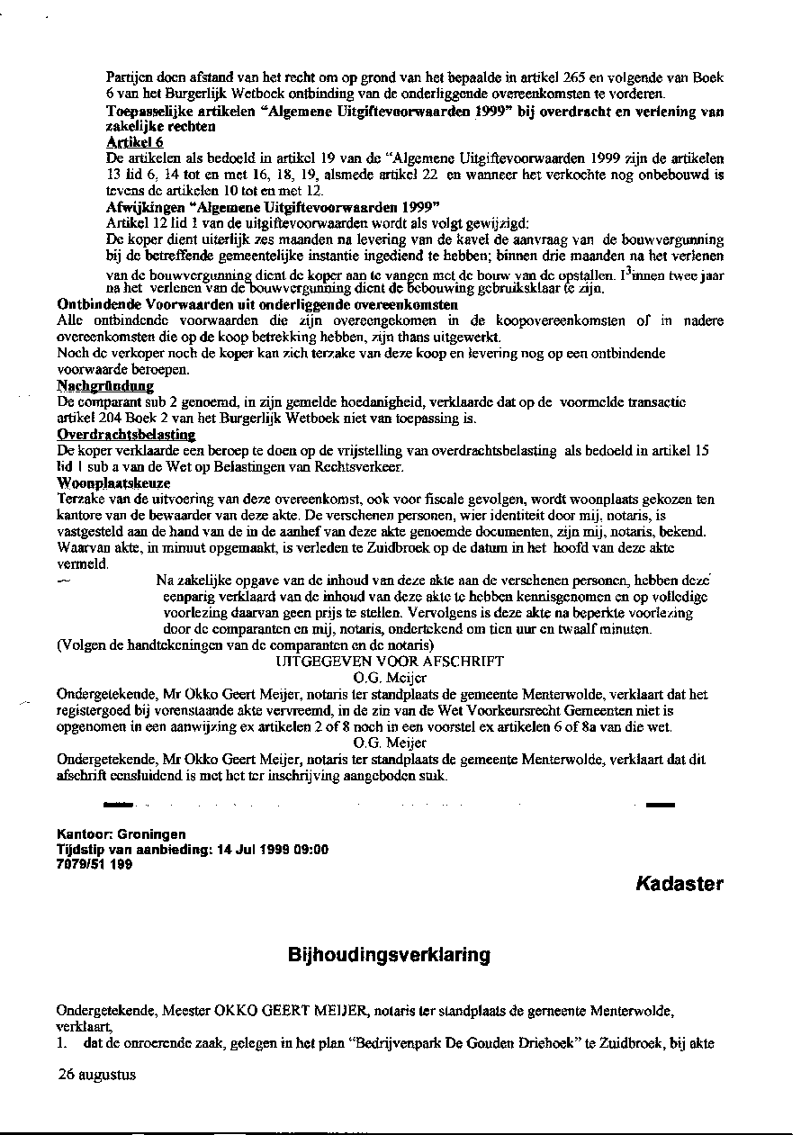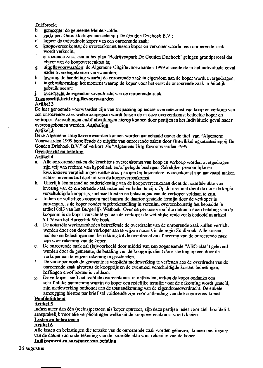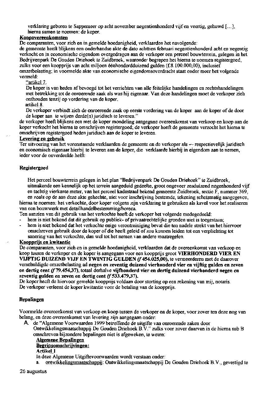 Andere verdachte grondtransacties op de Gouden Driehoek zijn mij niet bekend. Wel heb ik lange lijsten van betrokken ondernemers, waarbij met name enkele turkse ondernemers, een failliete transportfirma, autohandel, advertentiefraudeurs en een geheimzinnig Drents-Gronings genootschap dat zich Maatschap Club van Tien noemt, opvallen. Deze maatschap bestaat uit zeer hooggeplaatste figuren onder leiding van de projectontwikkelaar Lammert Snijder (PAS, oud-hoofdsponsor BV Veendam), zijn broer caravanhandelaar Sylvester Snijder (oud-voorzitter Bovag), Bart Duursema, registeraccountant Rob de Beus, en jurist W.L.R. Schuurmans.