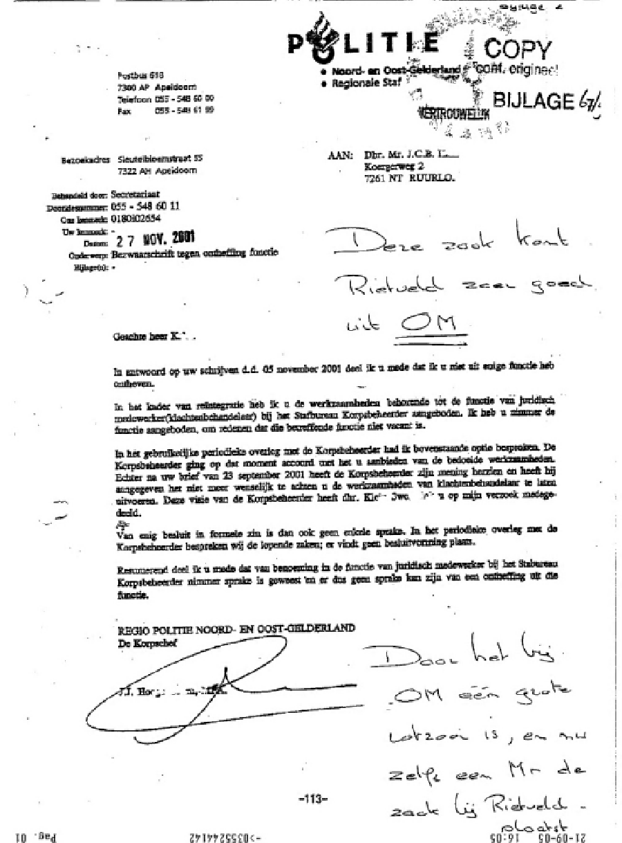 Document met procedure tegen mr. Maes van Dommerholt & van Dijk in Zwolle