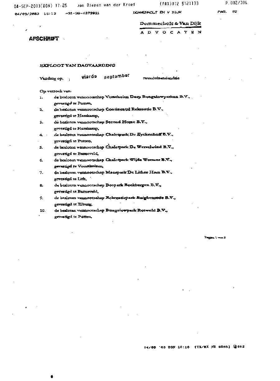 Briefwisseling van advocatenkantoor Dommerholt & van Dijk en st. SDN