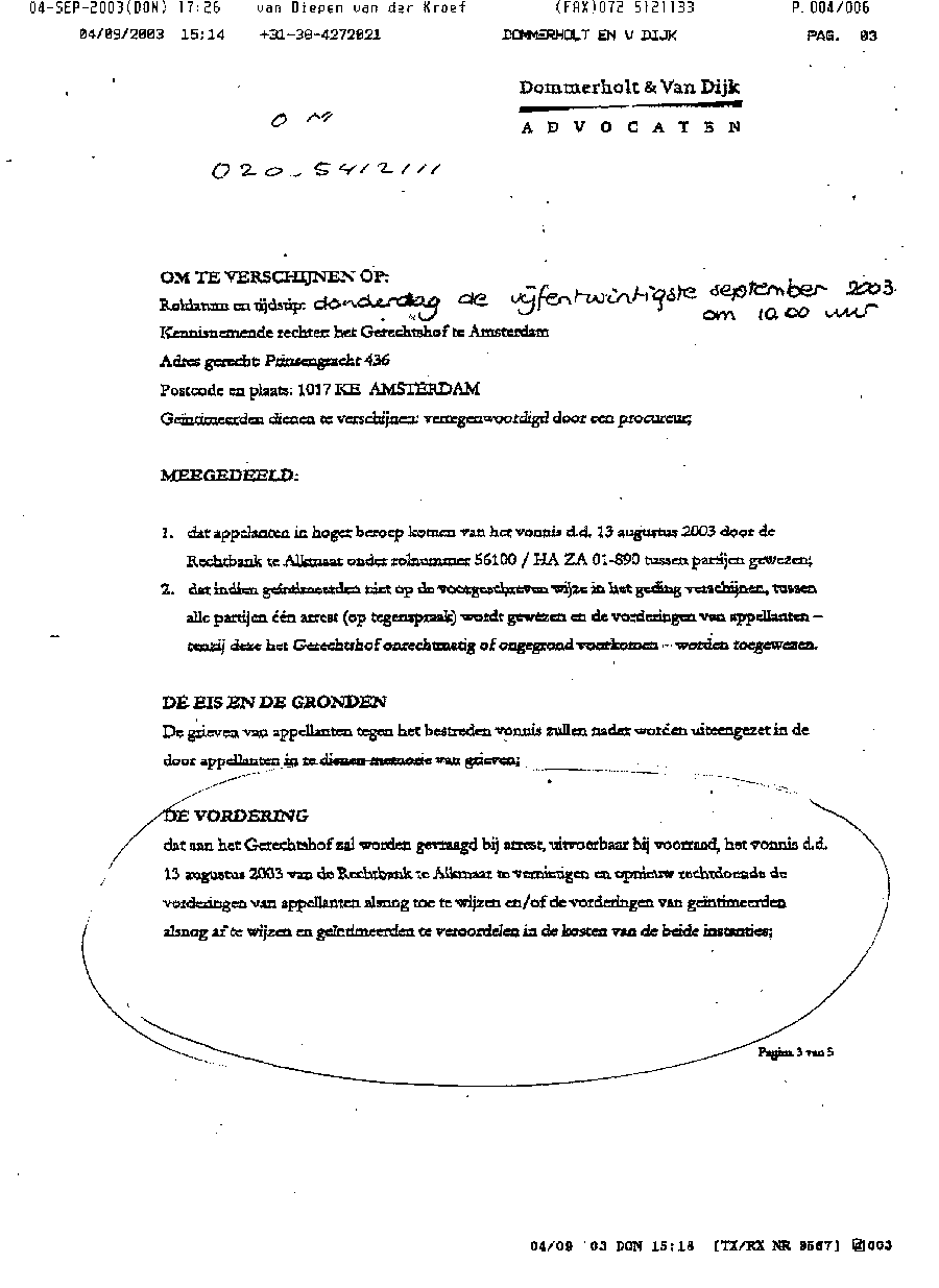 Document met procedure tegen mr. Maes van Dommerholt & van Dijk in Zwolle