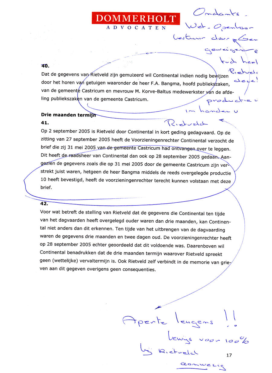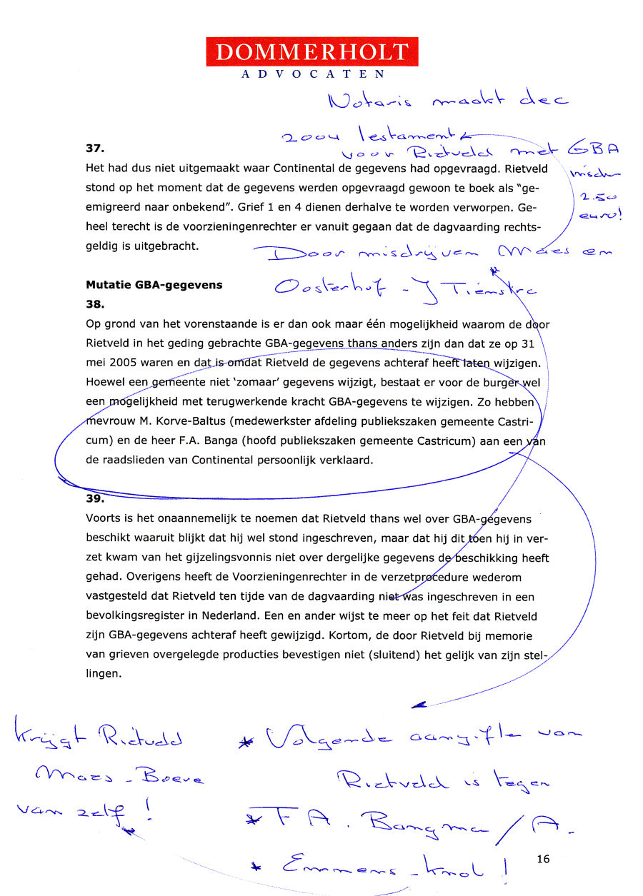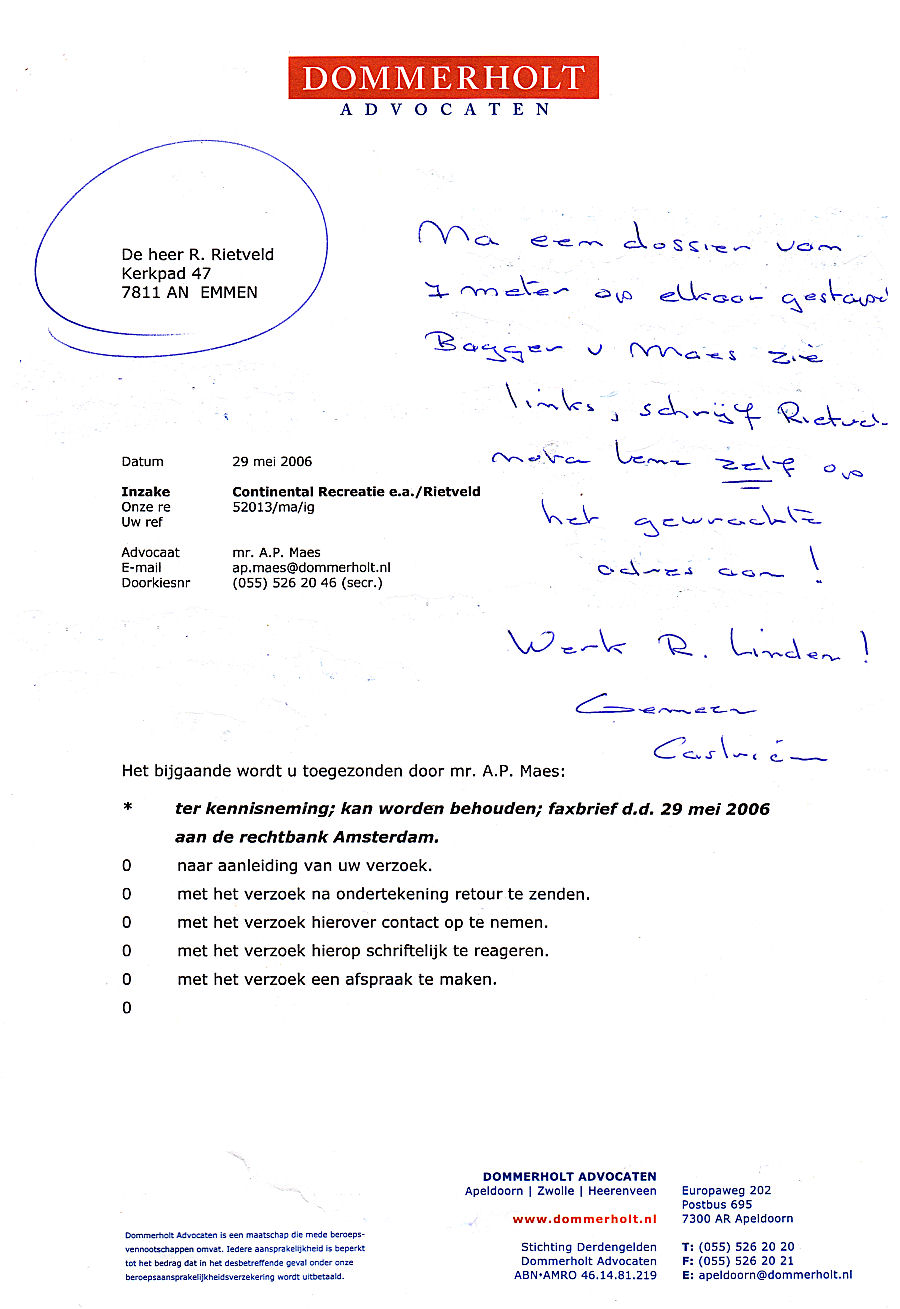 Document met procedure tegen mr. Maes van Dommerholt & van Dijk in Zwolle