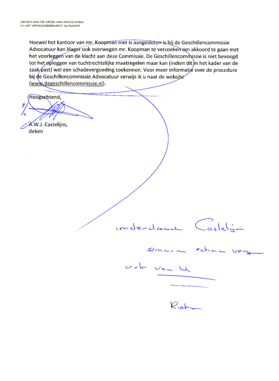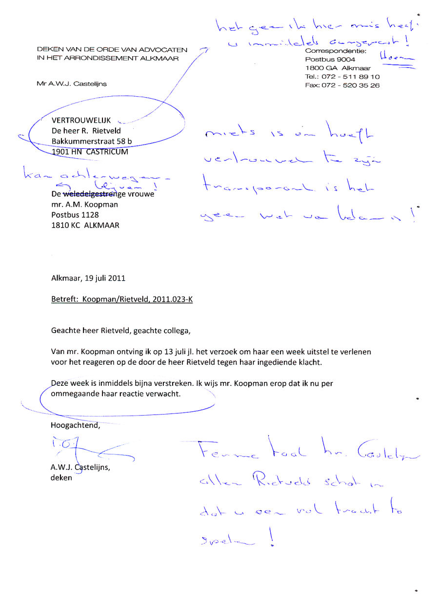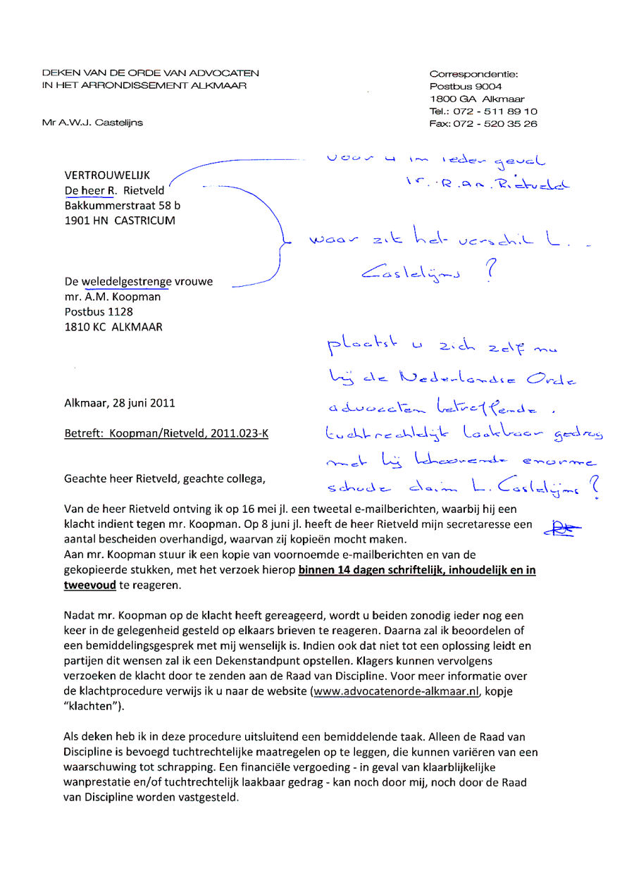 Gedragingen van Deken mr. L. Castelijns te Alkmaar
