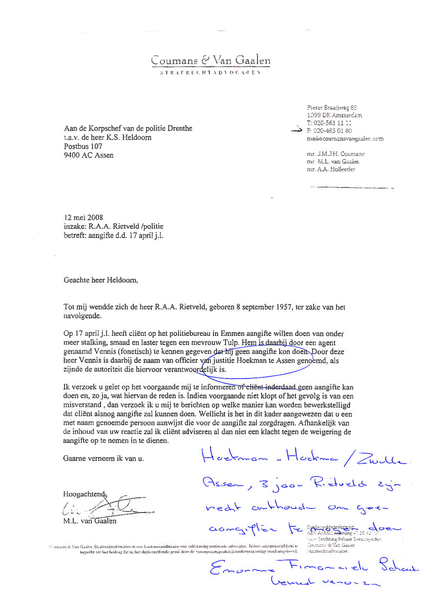 Gedragingenvan Officier van Justitie Hoekman in Assen en Hoekma in Zwolle