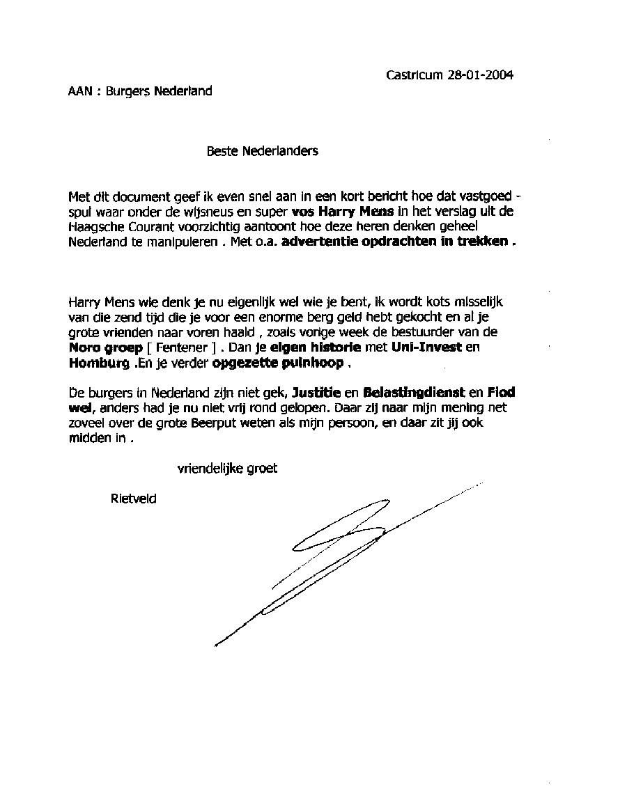 Een serie losse aantijgingen tegen mij (Rietveld) wegens onjuiste, vermeende kwalijke zaken